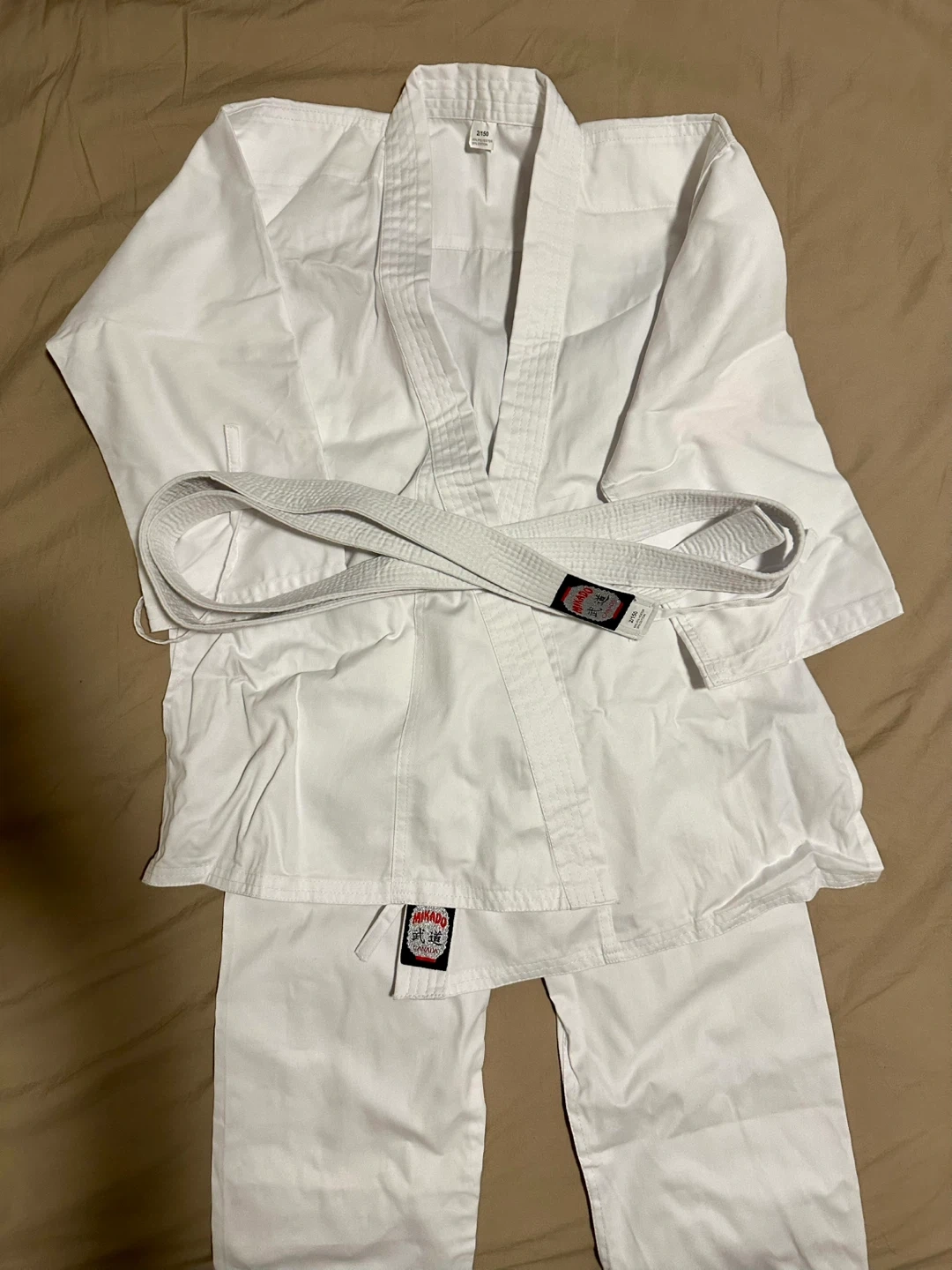 Selling a Mikado Judo Gi in size 2/150. It's made of 65% polyester and 35% cotton. Perfect for martial arts training!