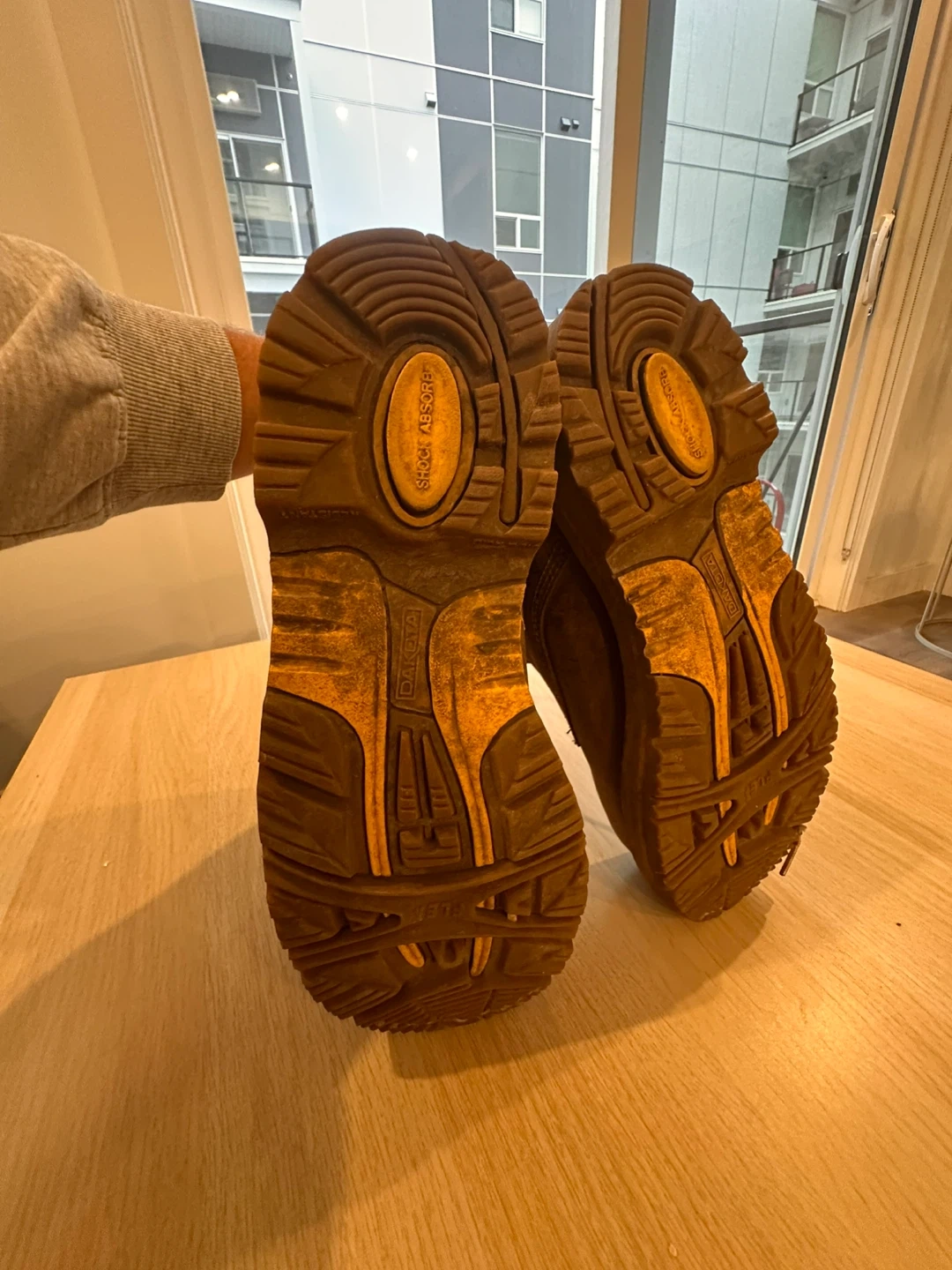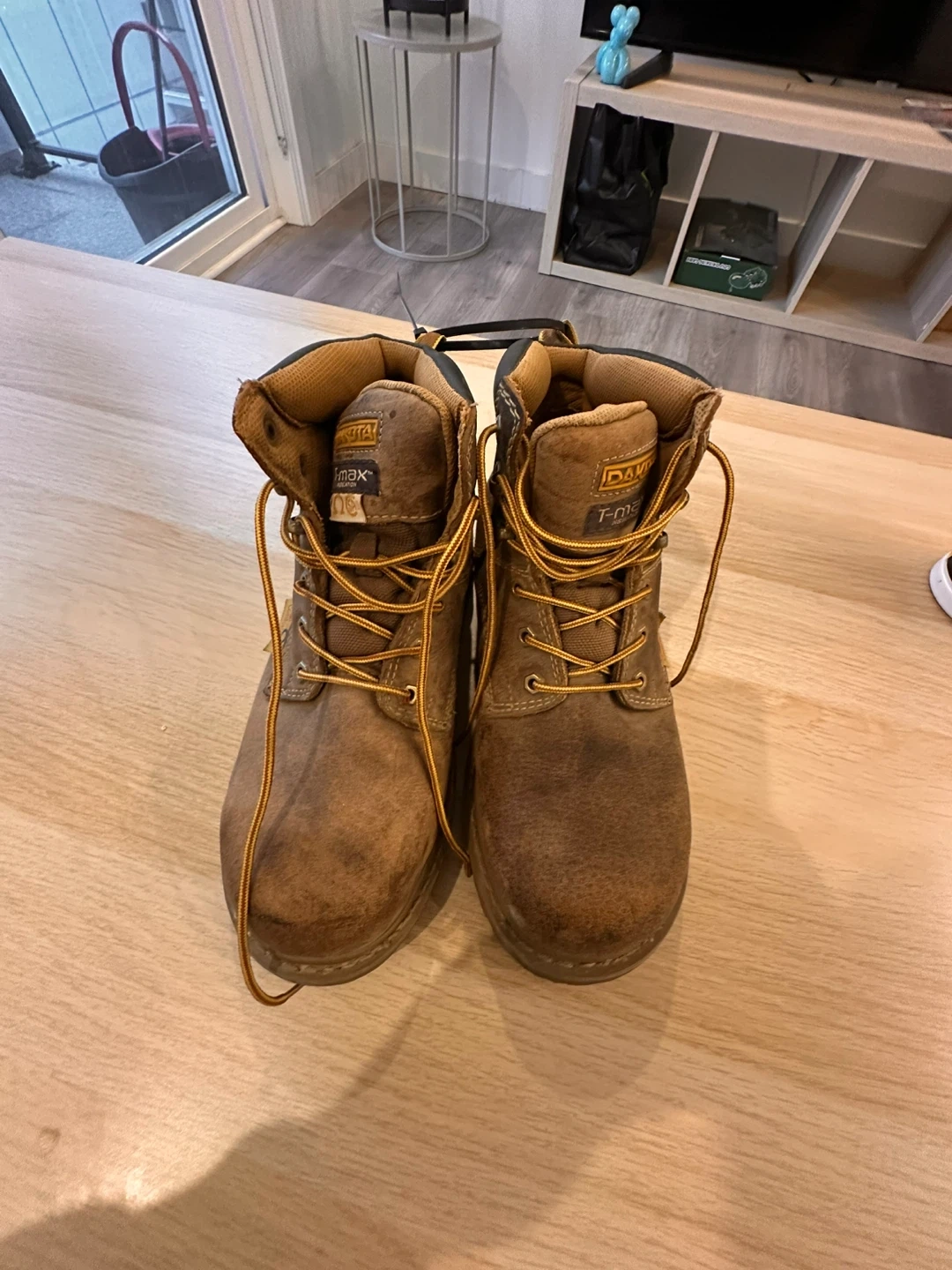 Selling a pair of Dakota Quad Comfort work boots in brown. They are size 9 Canadian/US, 42 EUR, and 8 UK. These boots have seen some use, but they're still in good condition and ready for work!