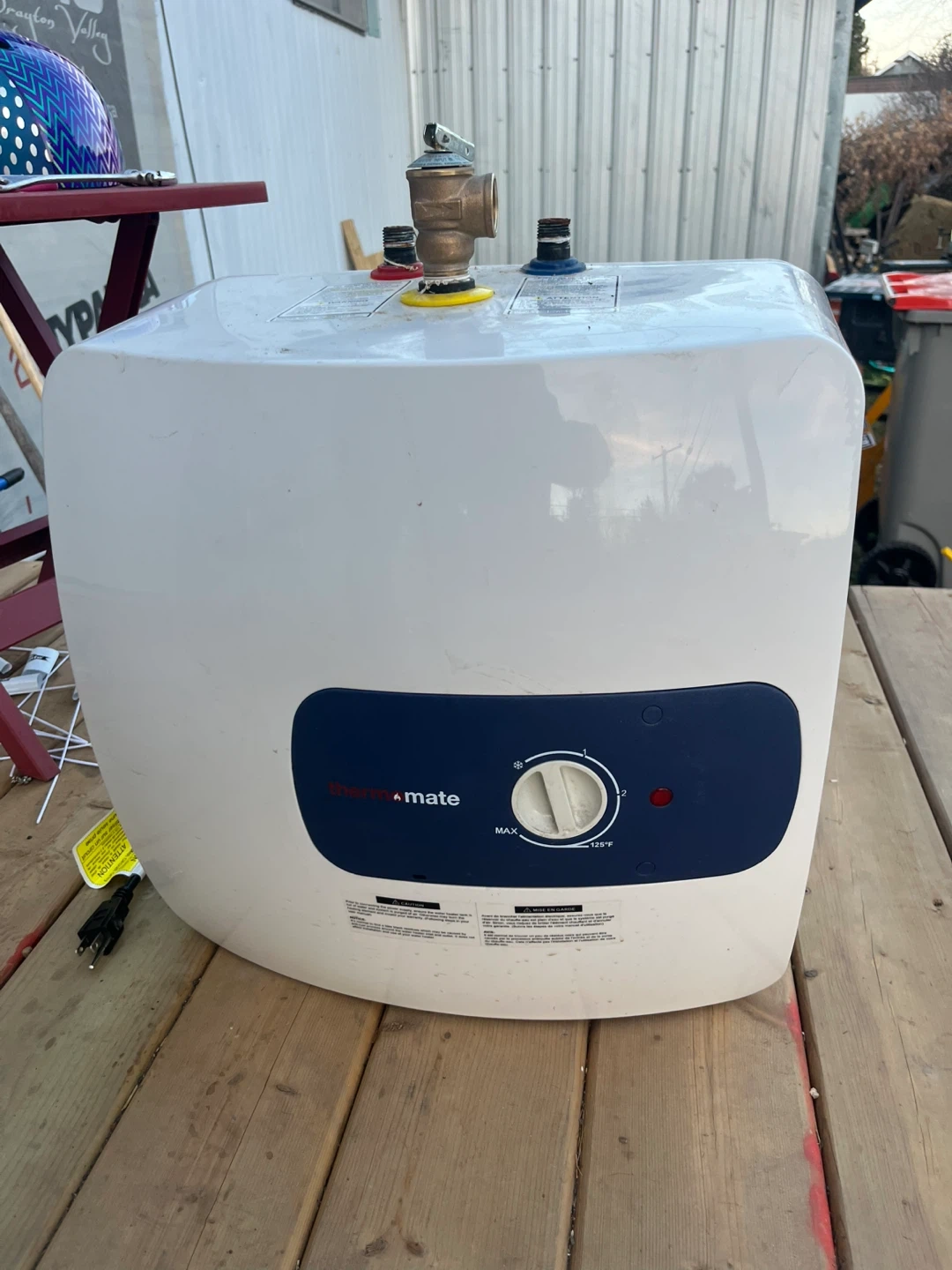 Selling a Thermomate electric mini-tank water heater. It's an 8.0 gallon point of use instant small hot water heater, 120V 1440W. It can be wall or floor mounted, and is plug-in to use. It's UL Listed ES800 works great only had installed for 30 days tell we got bigger tank 150 obo