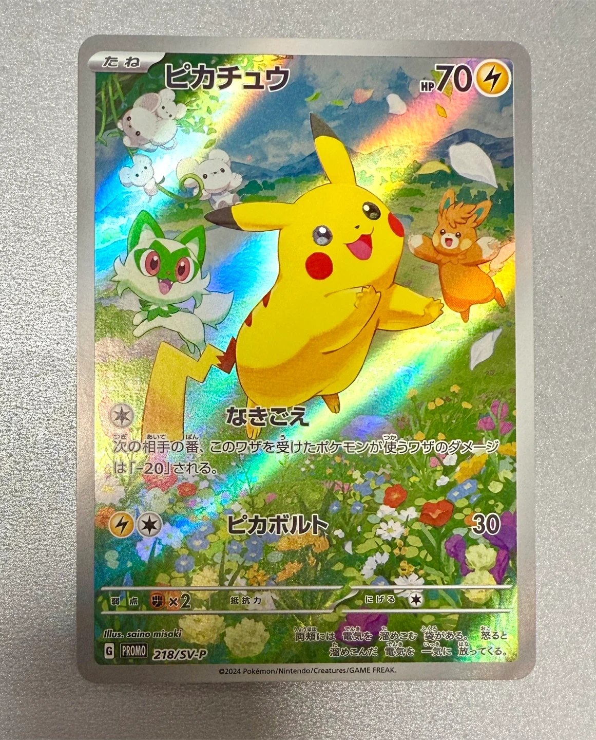 Buy & SellPikachu Pokemon Card 218/SV-PPikachu Pokemon Card 218/SV-P$43Selling a Pikachu Pokemon card, promo card 218/SV-P Illus. saino misaki ©2024 Pokemon/Nintendo/Creatures/GAME FREAK0 chats·0 favorites·13 viewsSELLERMegatkyo collectorHorseshoe Bay150 reviewsWHERE TO MEETPark Royal Shopping Centre