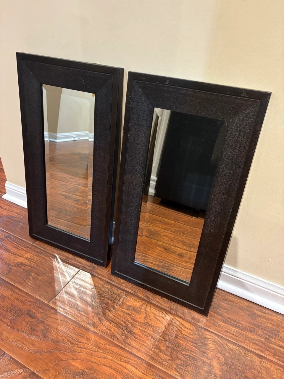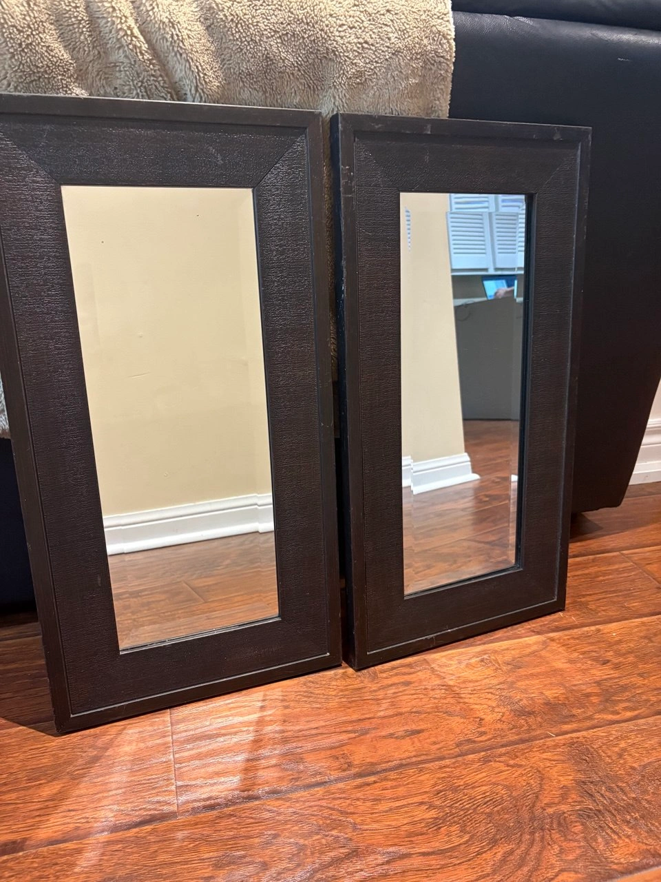 93Selling a set of two framed mirrors. They are in great condition and would look lovely in any room. The frames have a dark brown finish. 65CM × 35CM