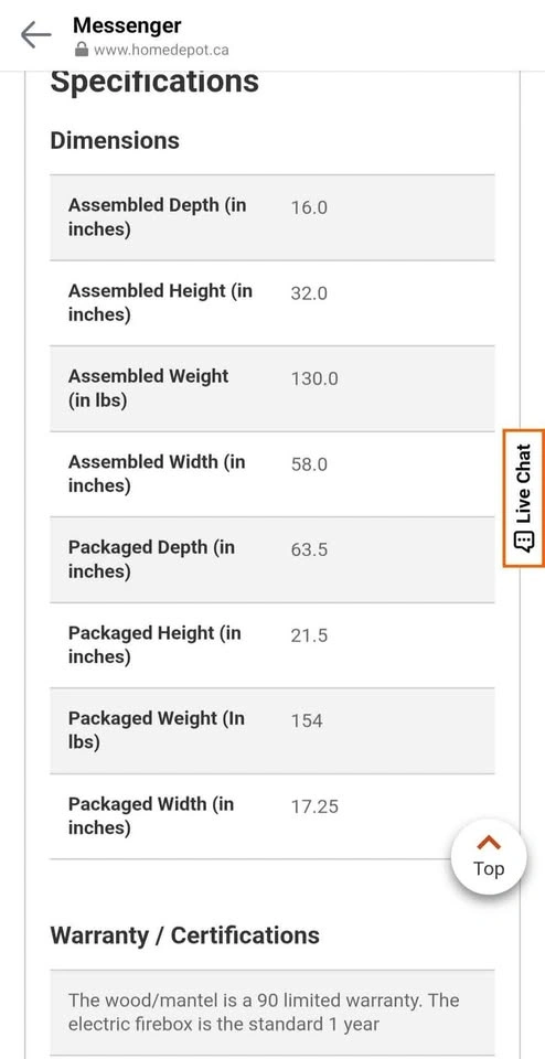 10Napoleon 58 inch electric fireplace Specs included in photo