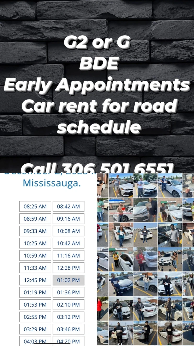 EARLY DATES FOR G AND G2 lessons in GTA RENT CAR FOR TEST.