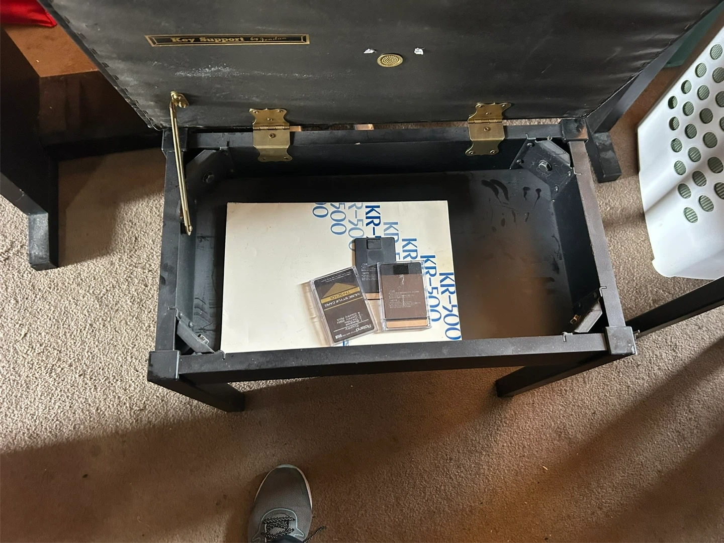 Selling a Roland KR-500 digital keyboard. It comes with a bench, so you'll have everything you need to start playing. The keyboard is black and features a modulation/bender switch.