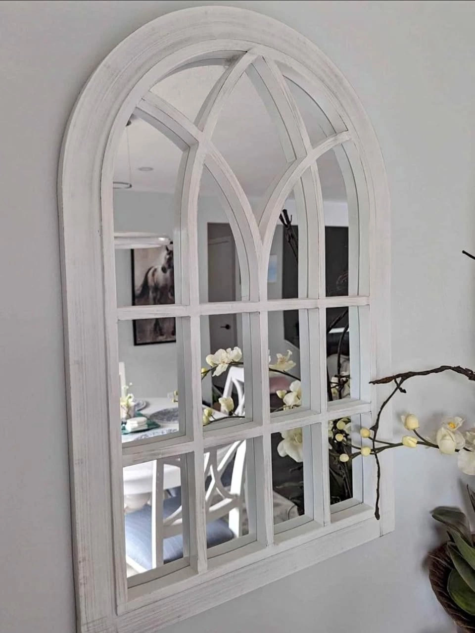 30 inch x 20 inch Distressed Farmhouse Arch Mirror Wall Decor