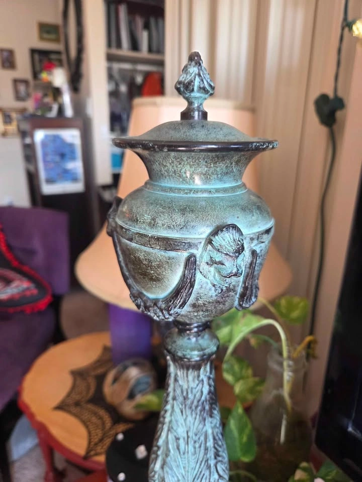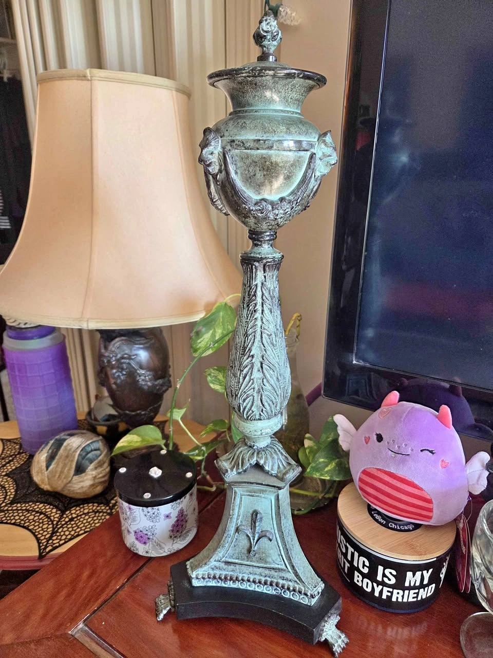 Unique Decorative piece. Solid and very heavy, roughly 8lbs. Metal with a very cool antique looking finish. A great statement piece for any eclectic home. Approximately 24" tall. Pick-up in the Beltline.