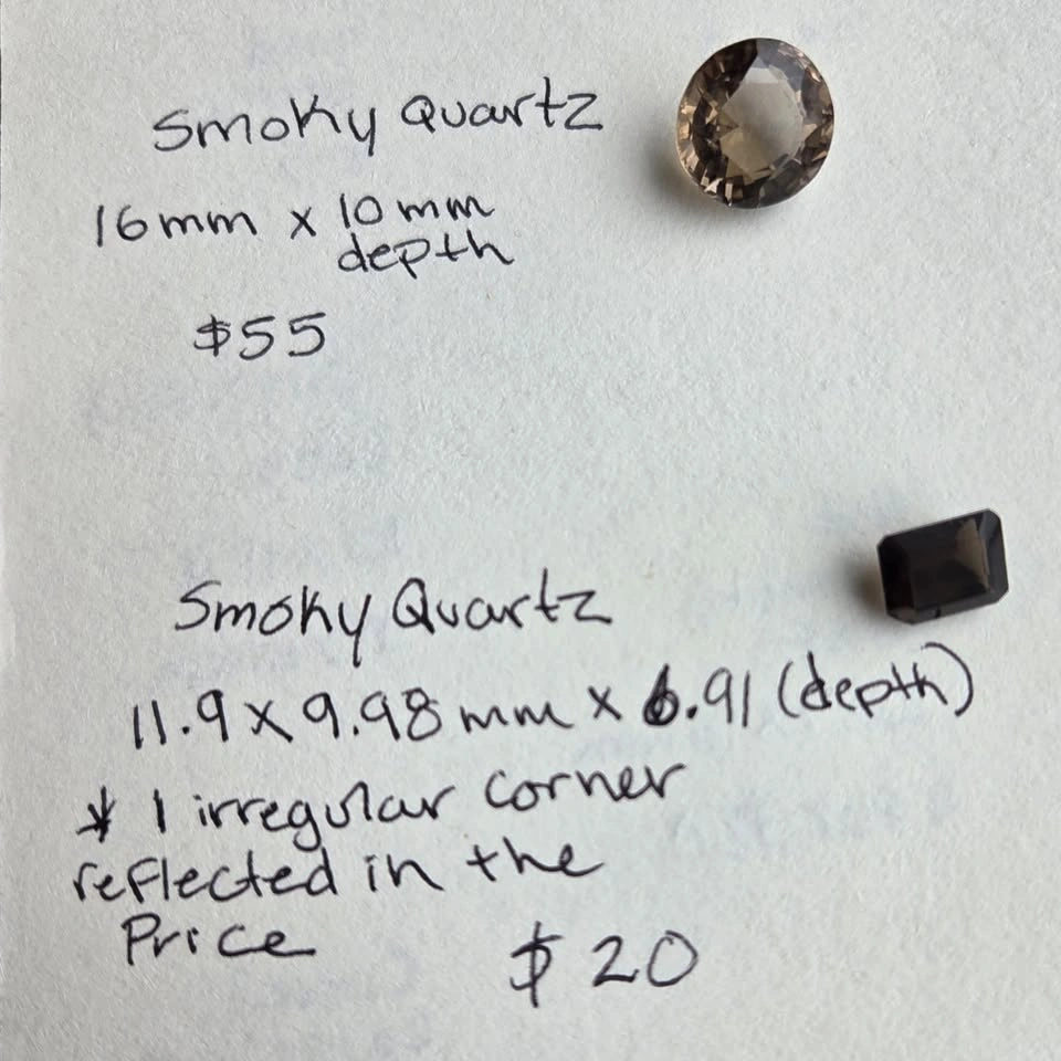 -Emerald cut smokey quartz (one corner is oddly shaped) $20 *reflected in the pricing.