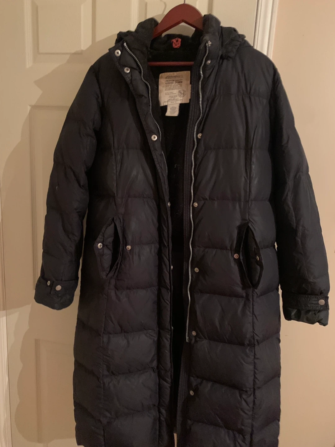 Eddie Bauer Premium Quality Goose Down Puffer Long Parka Coat Hooded Winter Women’s Sz Large
