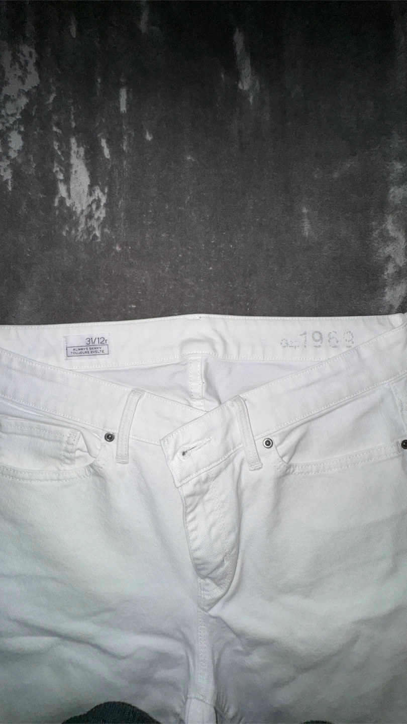 Selling a pair of Gap 1969 Always Skinny jeans in white! These are a size 31/12r and are in great condition. Perfect for a casual look!