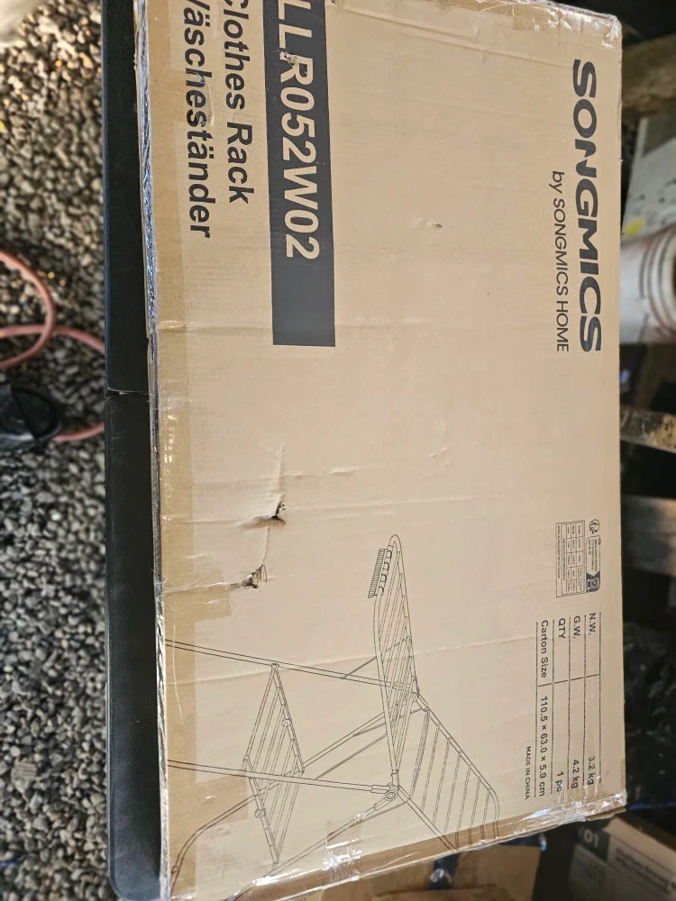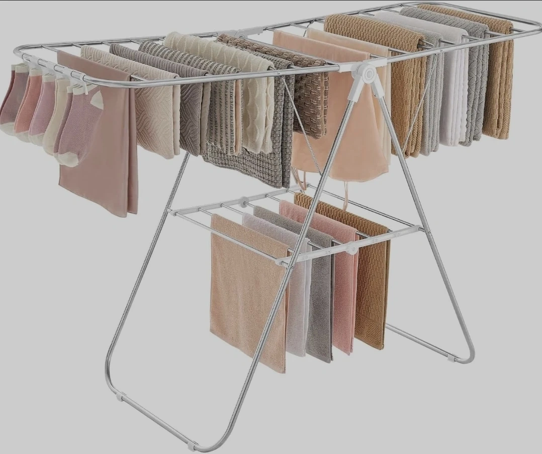 Get your laundry dry with this SONGMICS foldable clothes drying rack! It features 33 drying rods and 27 clips, offering plenty of drying space. It's easy to set up, take down, and store. The dimensions are 23.8" x 42.1" x 2.8".