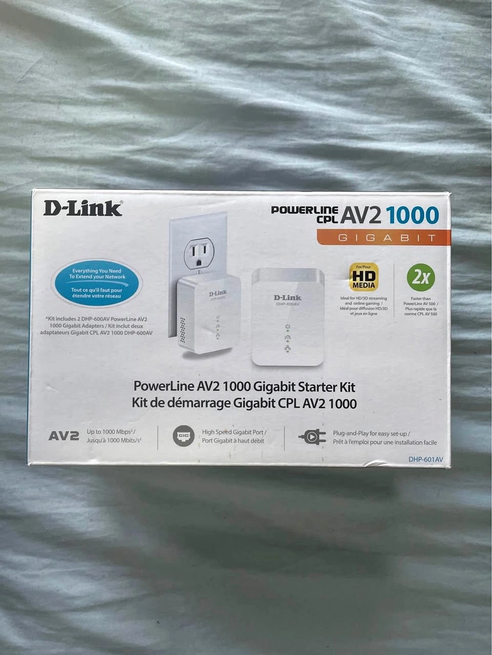 Selling my D-Link PowerLine Adapter. This device runs internet through your homes electrical wiring like an ethernet cable to the other unit to provide “ethernet-like” internet.