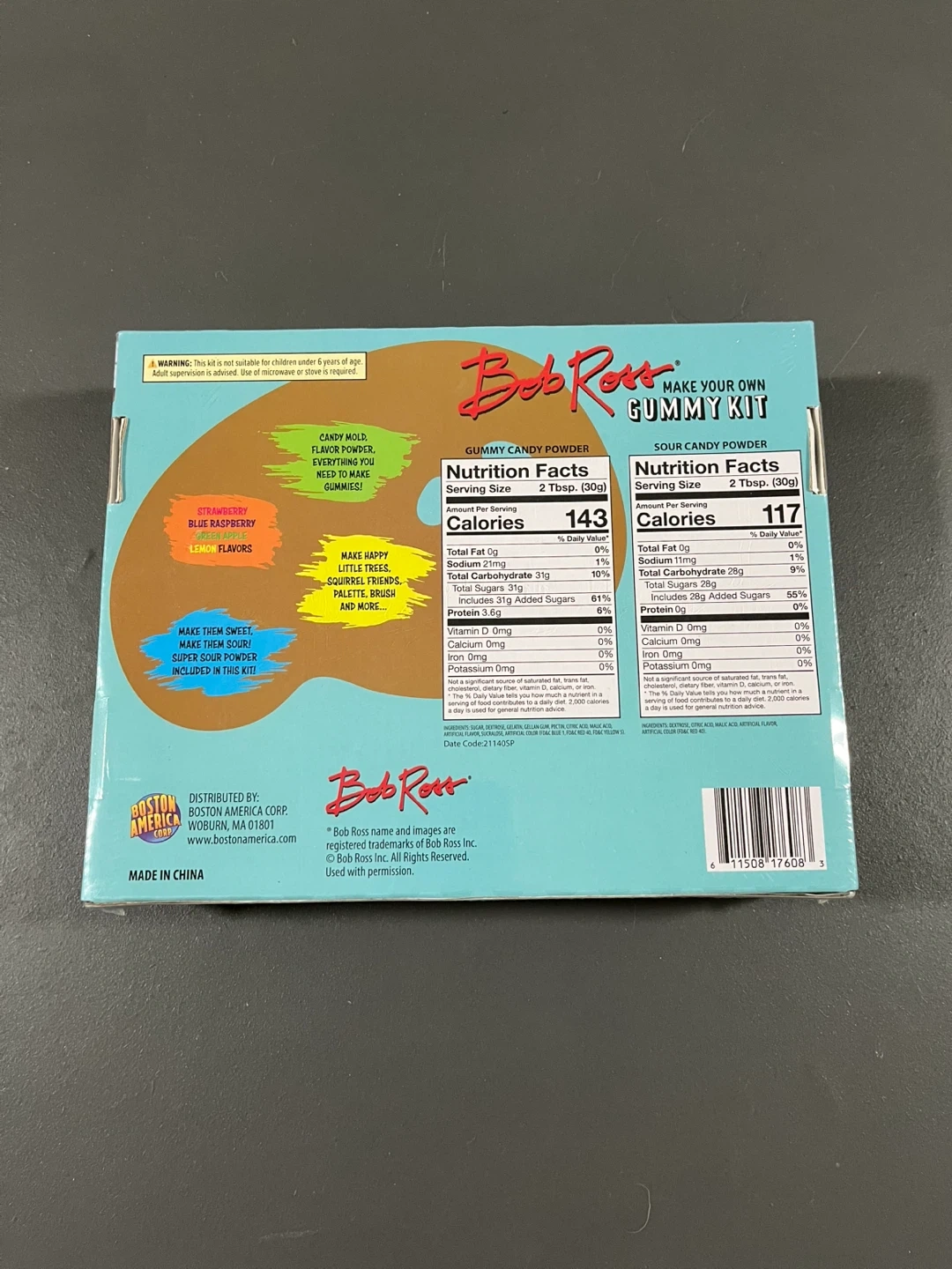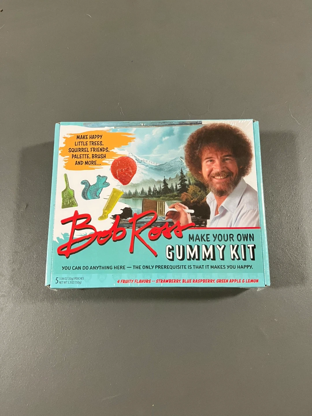 Make your own happy little gummies with this Bob Ross Gummy Kit! It includes everything you need to make them. You can do anything here - the only prerequisite is that it makes you happy! Includes 4 fruity flavors: strawberry, blue raspberry, green apple & lemon