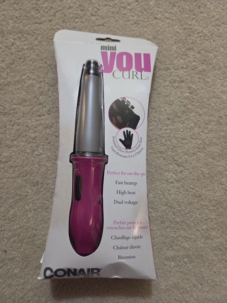 Get the look you want with the Conair Mini You Curl! It's perfect for on-the-go styling with its fast heat-up and dual voltage features. The ceramic technology ensures a smooth glide across your hair, eliminating damaging hot spots. It's versatile for creating kinky, curly, wavy, and dreamy styles. Included is a glove to protect your hand from the heat