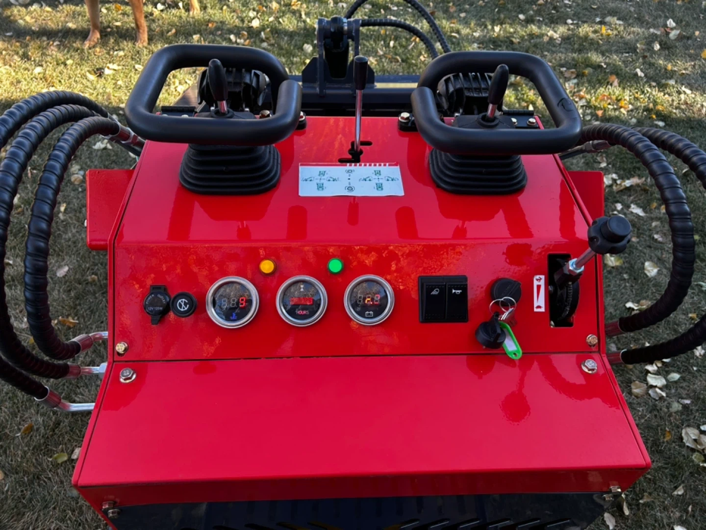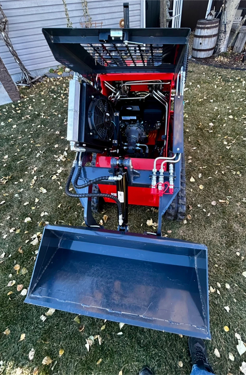 2025 MINI COMPACT TRACKED LOADER COLOR: RED 13.5 HP BRIGGS & STRATTON GASOLINE ENGINE 43" × 17" LOADER BUCKET (3) AUXILIARY HYDRAULIC QUICK CONNECTS 12V HYDRAULIC COOLING FAN (2) WORKLIGHTS BATTERY DISCONNECT DIGITAL HOUR METER: 2.2 hours as of today. DIGITAL OIL TEMPERATURE SENSOR 12V POWER OUTLET TOOL BOX WITH MANUAL Fits into the back of a shortbox truck $3900 FIRM