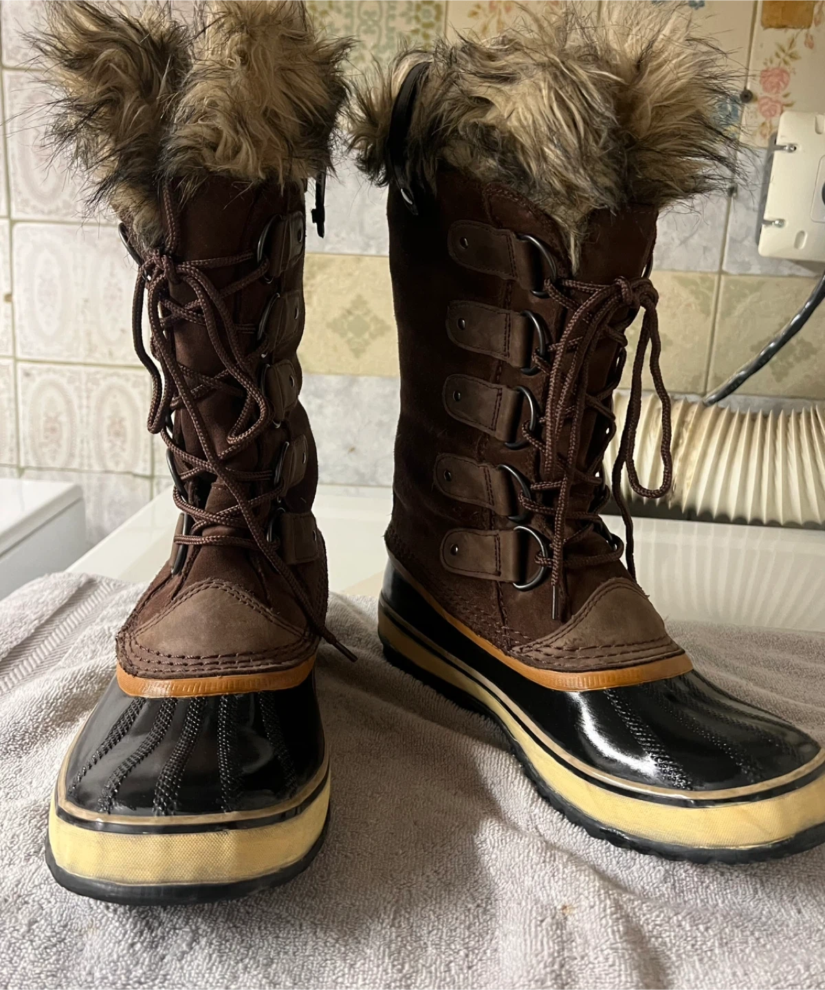 67Keep your feet warm and stylish with these Sorel Tofino II winter boots! These boots are a beautiful brown colour and lined with faux fur, perfect for braving the Canadian winter. They're in great shape and ready for a new home. Size 8.