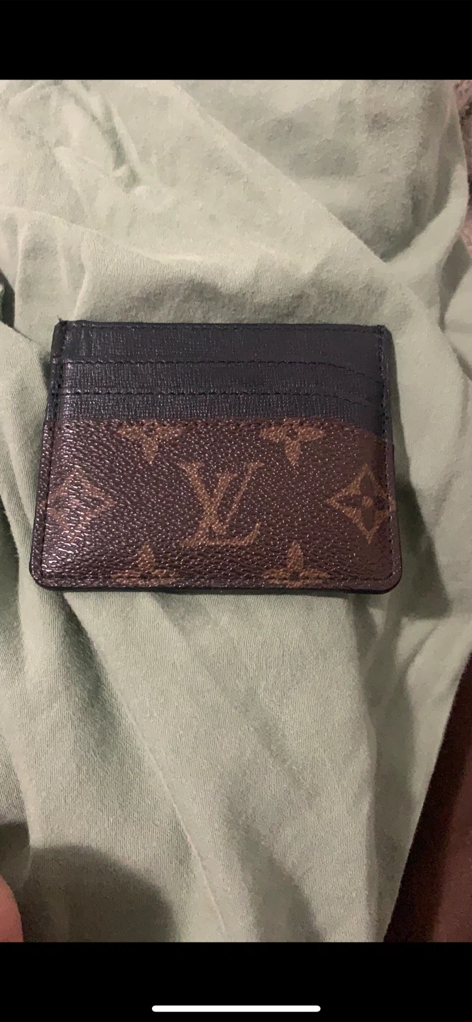Selling a Louis Vuitton card holder. It has a brown monogram pattern on the bottom and black on top. Great for keeping your cards organized!