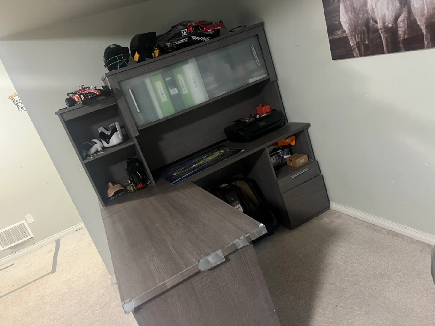 Selling a grey desk with a hutch. It's in great shape and perfect for a home office or student. Lots of storage space in the hutch and drawers!