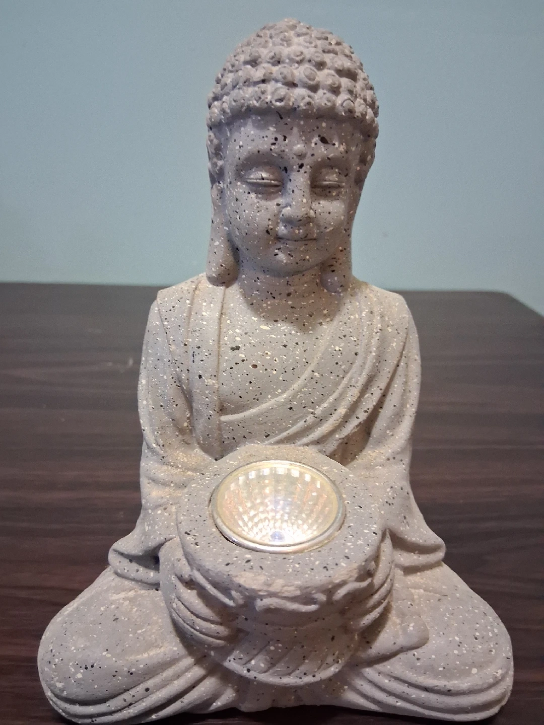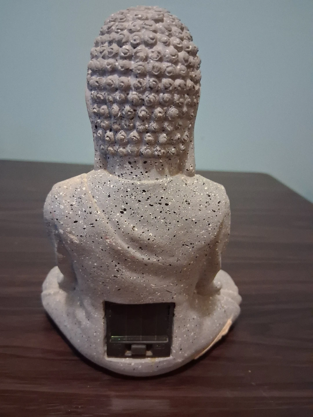 452I'm selling a lovely Buddha statue that has a built-in LED light, it's powered by solar energy. It's perfect for adding a touch of serenity to any room or outdoor space. The statue is in great condition and ready to bring some peace to your home.