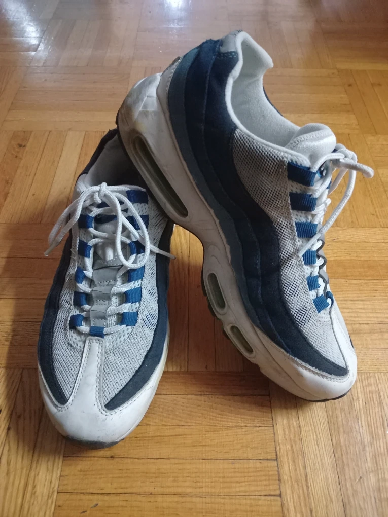 Selling a pair of Nike Air Max 95 sneakers in size 9 M.They are in good condition and have a cool blue and grey colourway. Perfect for everyday wear or hitting the gym!