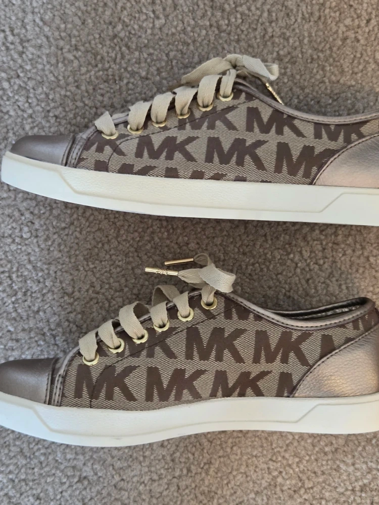 Cute Michael Kors sneakers with the MK logo pattern all over! They are brand new never worn and ready for a new home. Size 7.