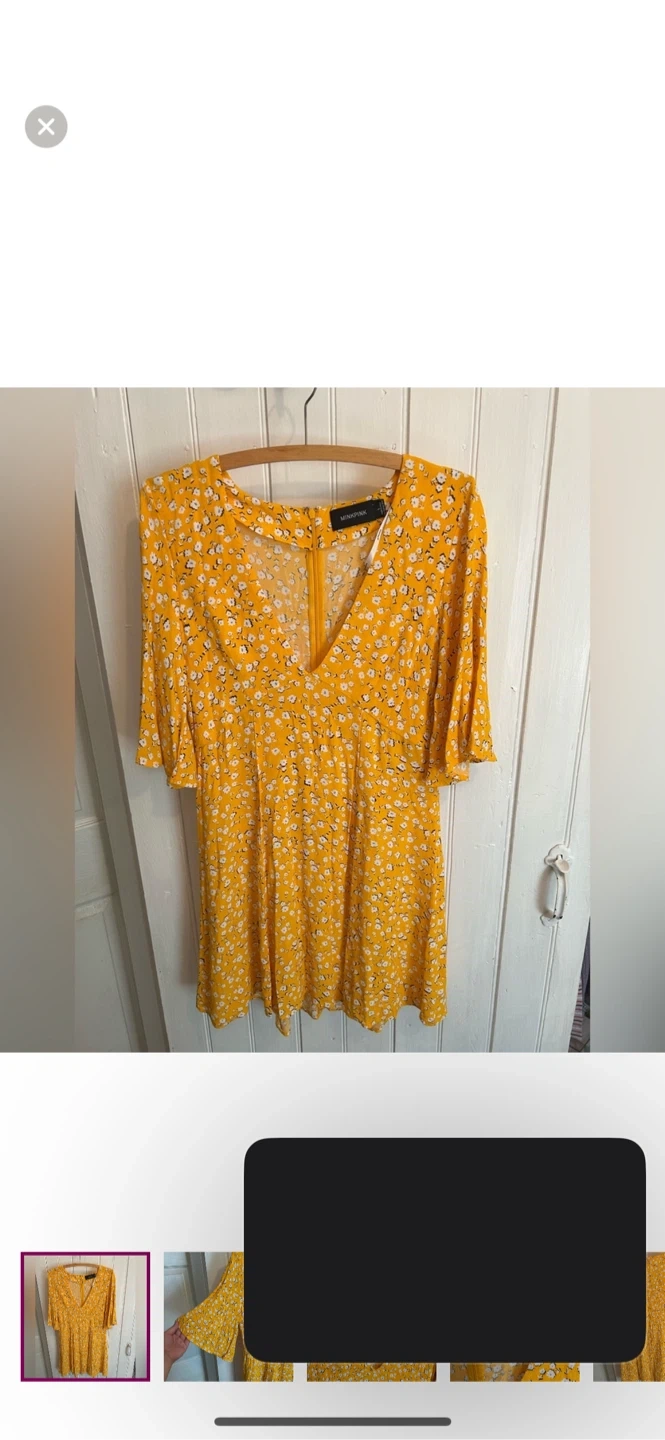 Mink Pink brand. Elbow length sleeve vneck flowy dress. Yellow floral. Size large. Brand new condition