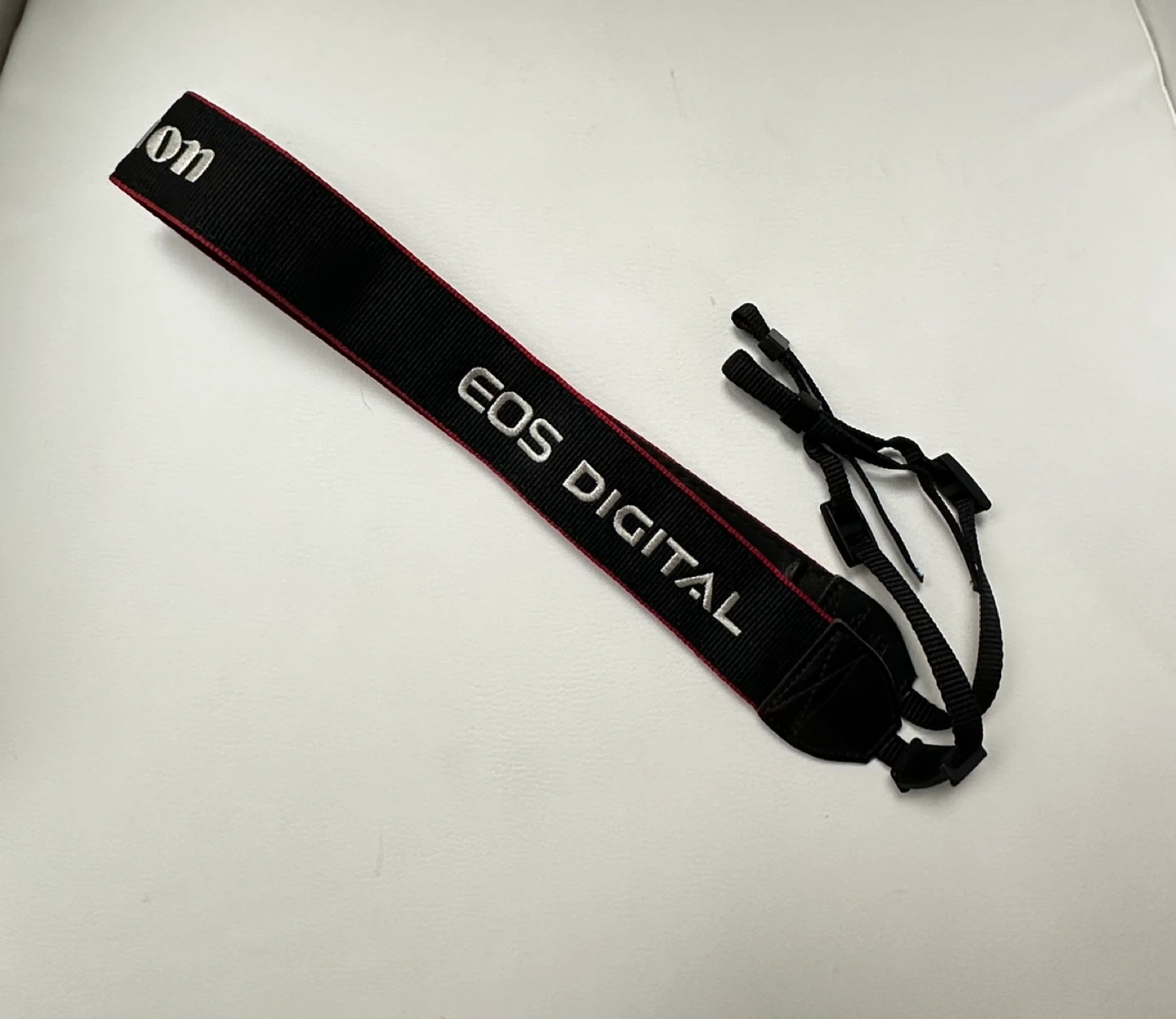 Canon EOS Digital camera strap in great condition! It's black with red trim and white embroidered lettering. Perfect replacement or spare strap for your Canon camera