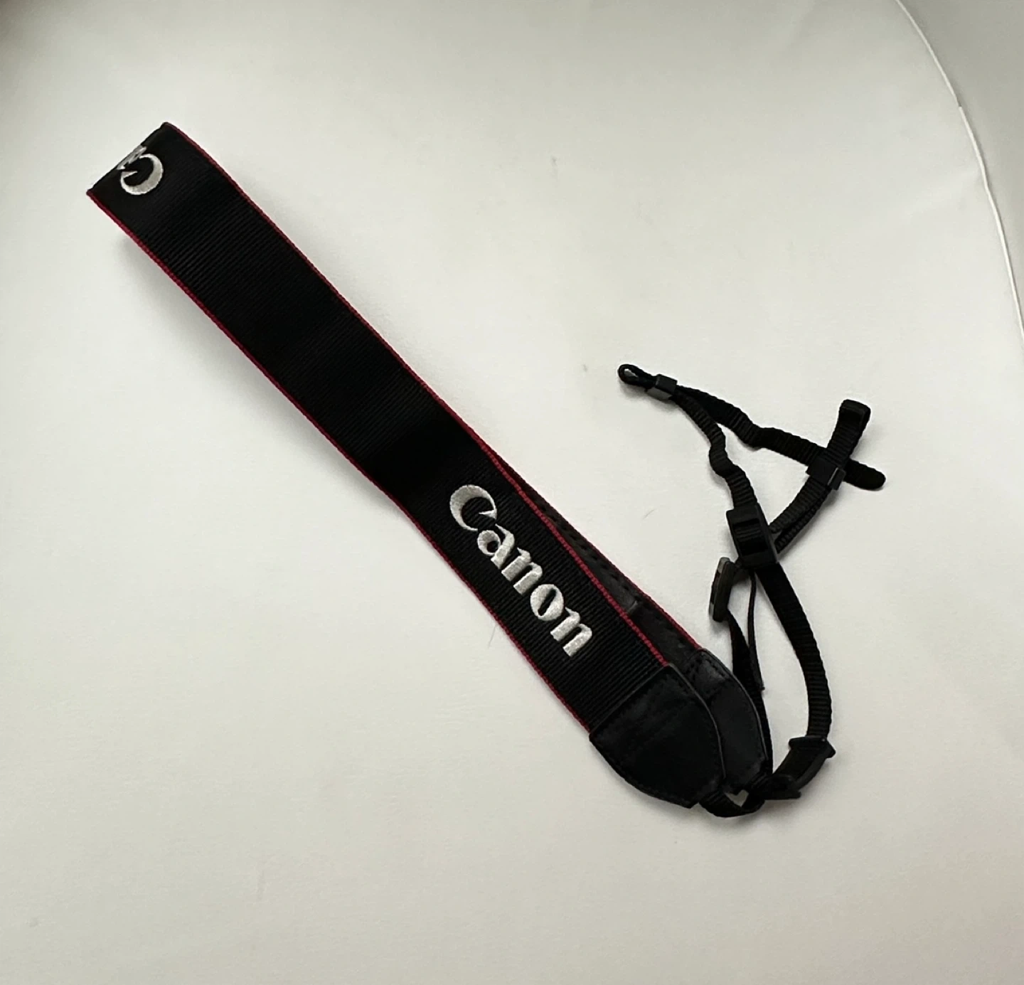 Canon EOS Digital camera strap in great condition! It's black with red trim and white embroidered lettering. Perfect replacement or spare strap for your Canon camera