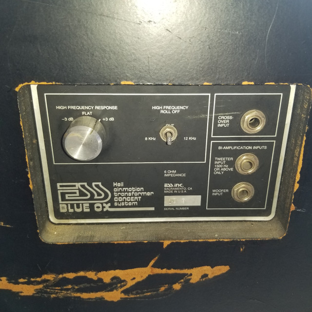 RARE ESS Blue OX Heil Air Motion Transformer Concert System Speakers. Tested working. Made in the USA. PICK UP IN RICHMOND HILL, MUST HAVE TRUCK / VAN AND PEOPLE TO LIFT IT.