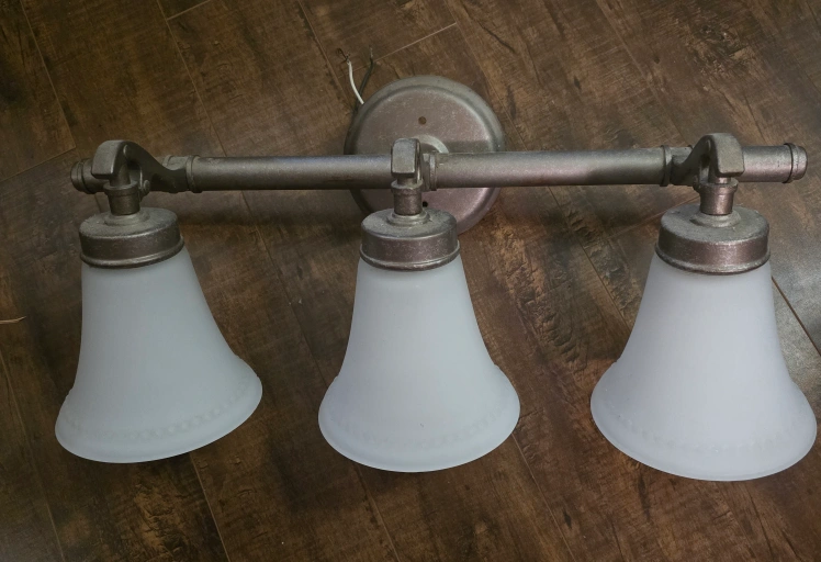 Selling a bathroom vanity light fixture with three lights. It has a nice, classic look with frosted glass shades. Perfect for adding some extra light to your bathroom!