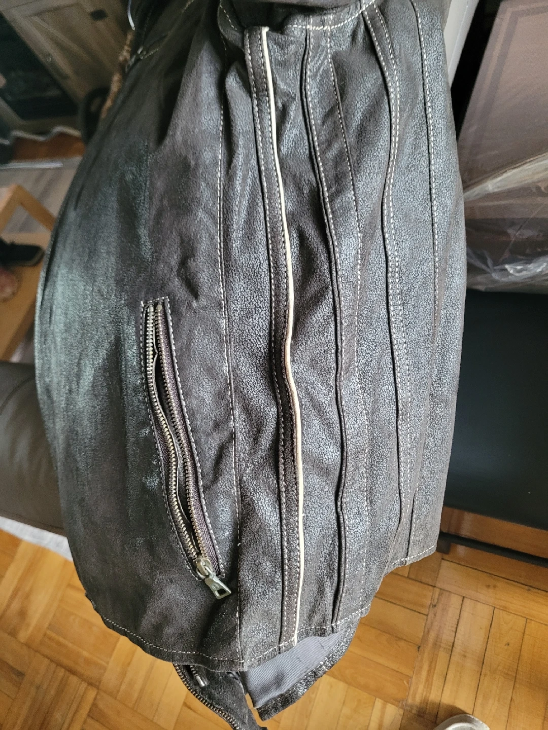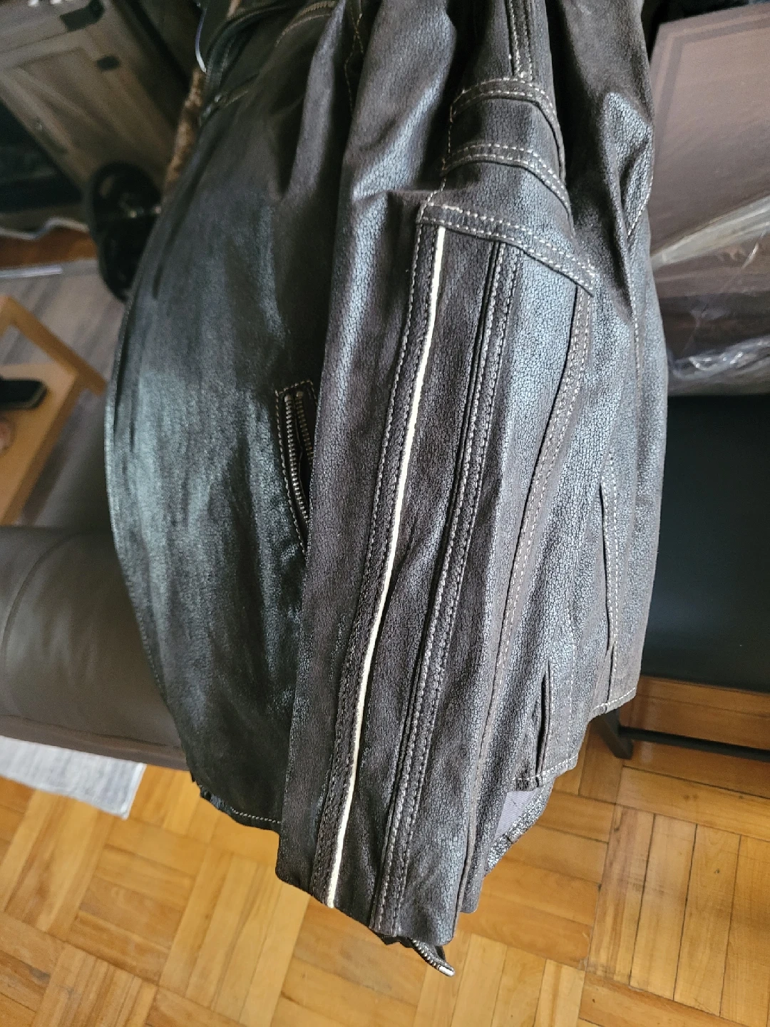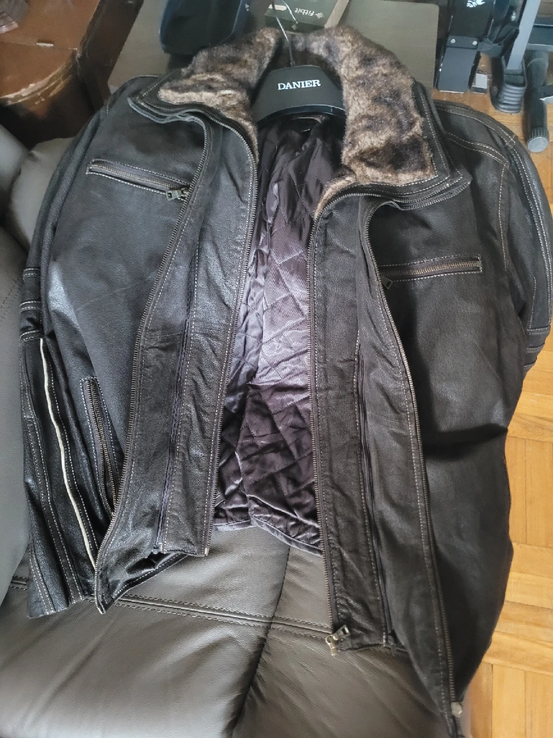 Selling a Danier leather jacket in size XL. It features a stylish design with zippers on the sleeves . The jacket is in Excellent condition and perfect for staying warm and looking fashionable! fur caller Inside Liner zip Out. Only one a few times sit in the closet. Dark Brown leather jacket. Very clean. Smoke-free and pet free. Nice.