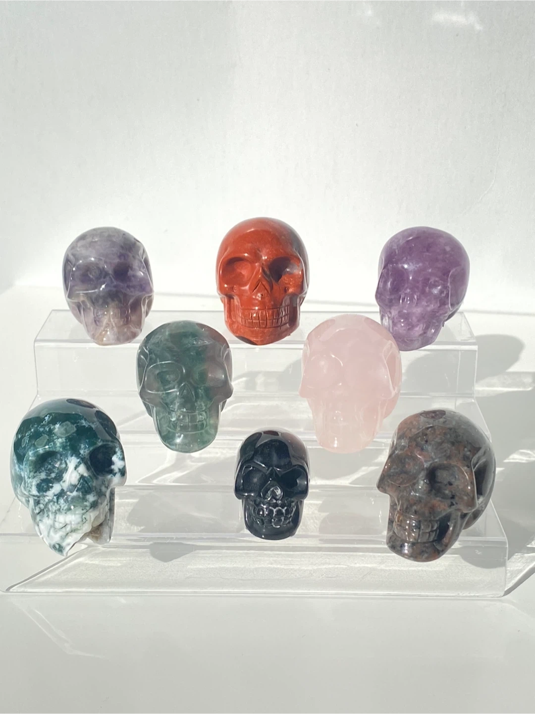 31$35 each 1.75”- 2” wide Dm for more photos Small Black Obsidian $20 Red Jasper Flourite Moss agate Purple Fluorite Amethyst Rose Quartz Yooperlite (UV reactive)