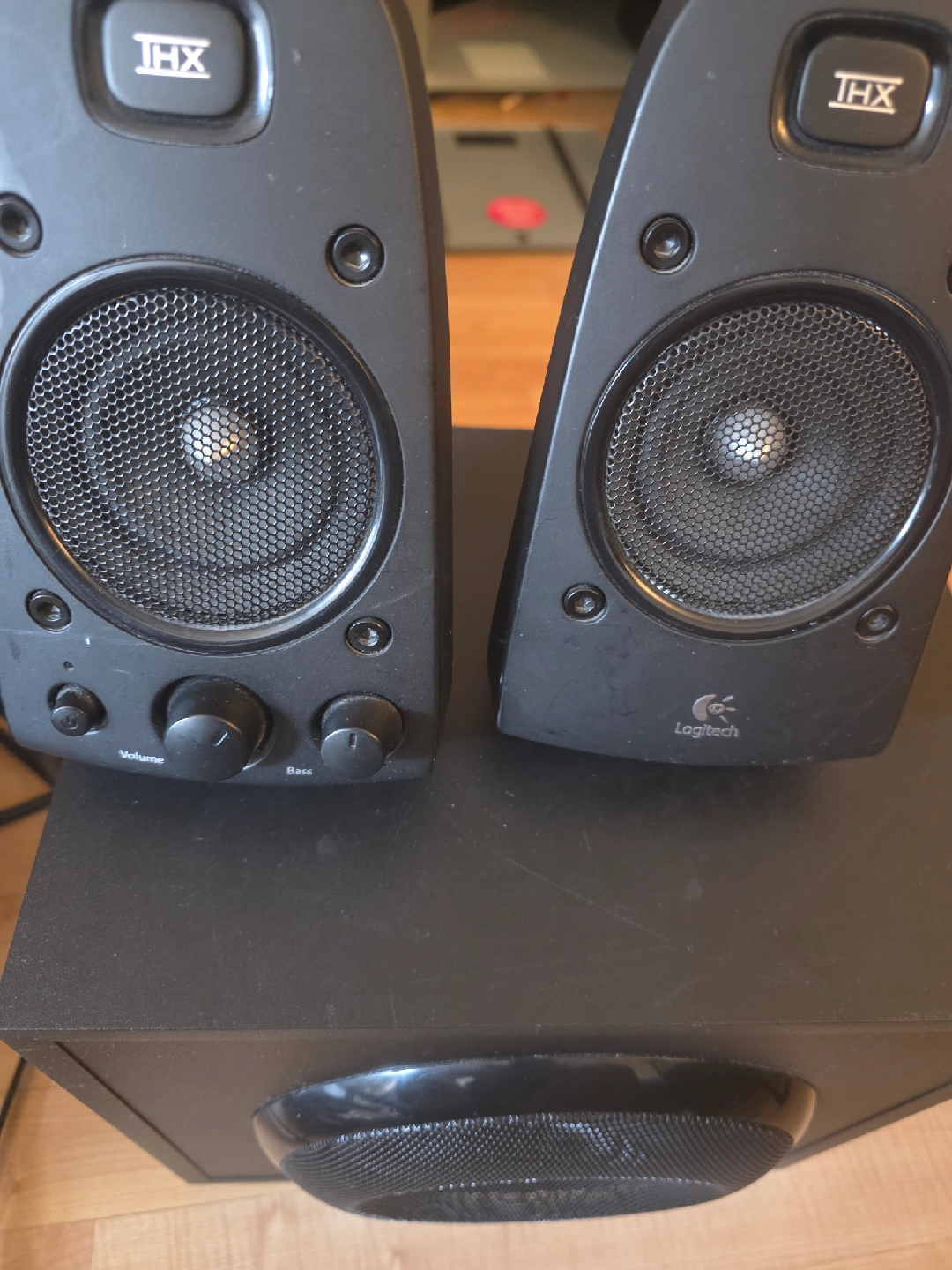 Selling a Logitech Speaker System Z623. This powerful 2.1 speaker system delivers THX-certified audio for an immersive sound experience. Perfect for music, movies, and gaming! It includes a subwoofer and two satellite speakers for full, rich sound.