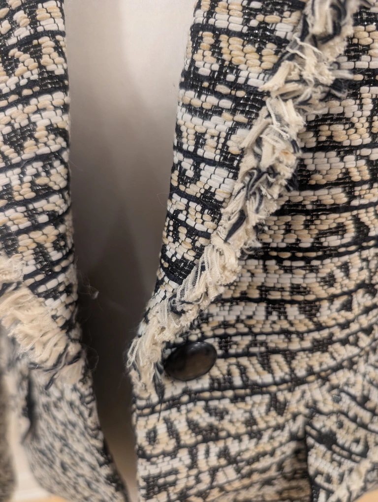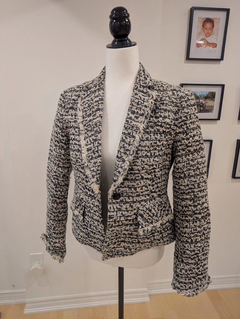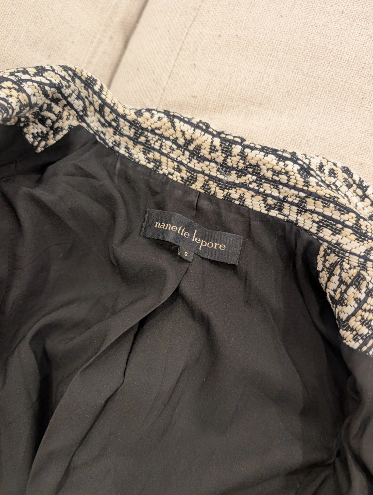 Selling a stylish Nanette Lepore tweed blazer in size 8. It's in great condition and ready for a new home! The tweed fabric gives it a classic look, perfect for dressing up or down.