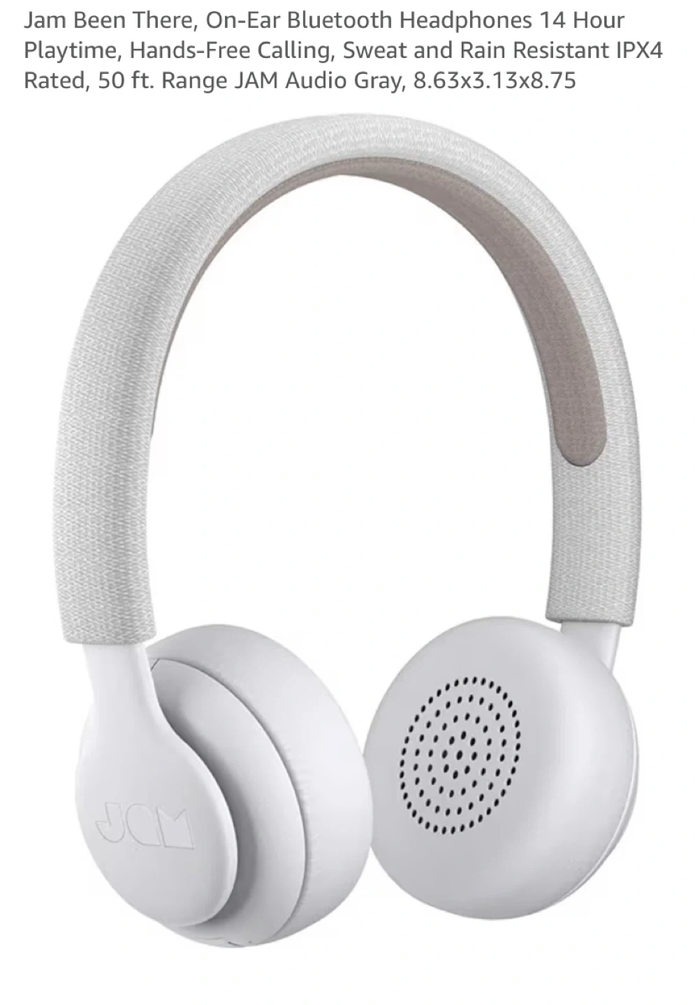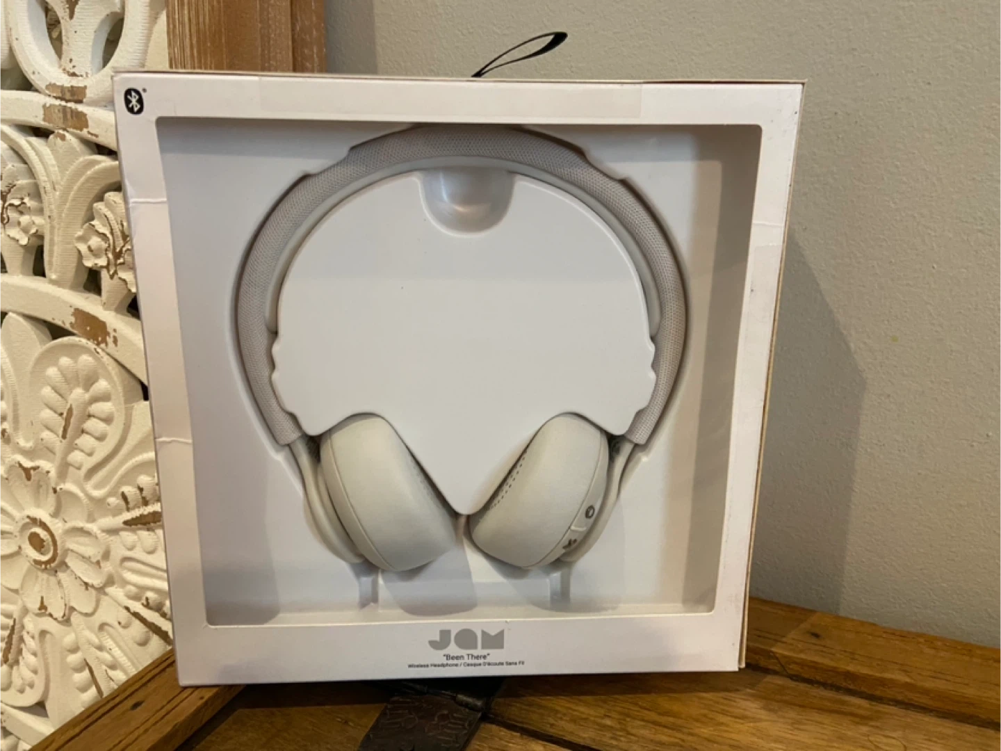 New, sealed box Jam Been There, On-Ear Bluetooth Headphones, wireless Grey $50(retail $85 plus tax) Pickup in Whitby BLUETOOTH COMPATABLE: Be free from wires that keep you connected to your smart device. The Been There is Bluetooth compatible and allows you to roam within 50-feet of your connected device ON-EAR DESIGN: This soft, light-weight, supra-aural headphone sits comfortably on your ears without any bulk. The sleek design provides a natural, open sound to your environment and small ear cups allow for easy portability HANDS-FREE CALLING: Don’t interrupt your workout. You can answer the phone without disconnecting your earphones. Been There knows when a call is coming in and will pause the music before ringing. When you hang up, the music starts where the track left off. If you’re making a call, just start dialing from your phone and Been There does its hands-free thing SWEAT AND RAIN RESISTANT: These specially designed, IPX4 rated earbuds allow you to combat the elements. Working out? Caught in a monsoon? Not a problem. These earbuds are ready for a challenge AUX--IN PORT: No Bluetooth, no problem. The aux-in port allows you to hook your Been There to your device with a 3.5mm cable so you can enjoy your music wherever you are