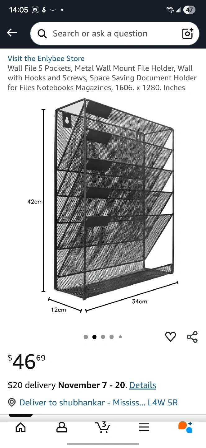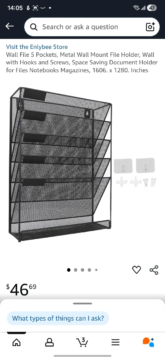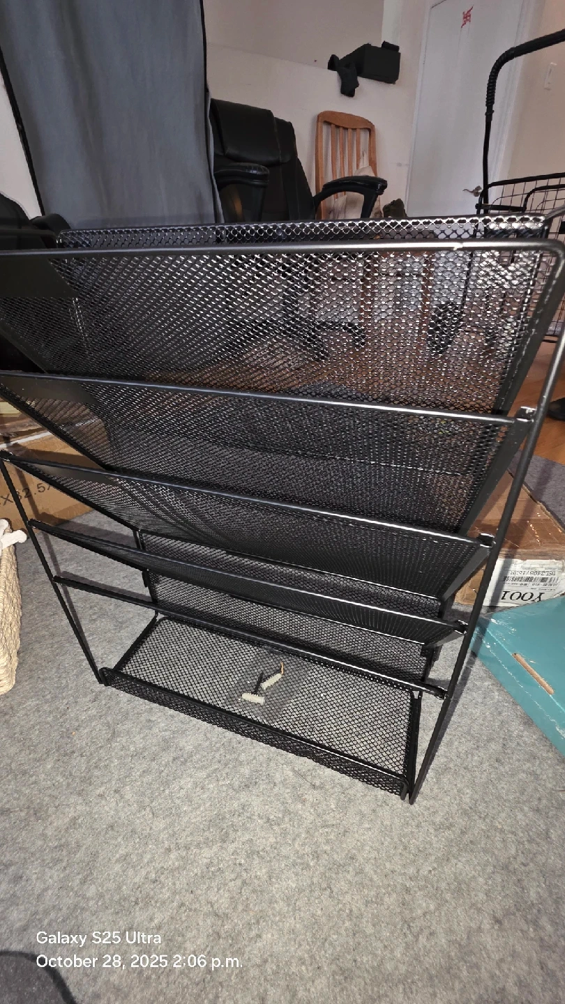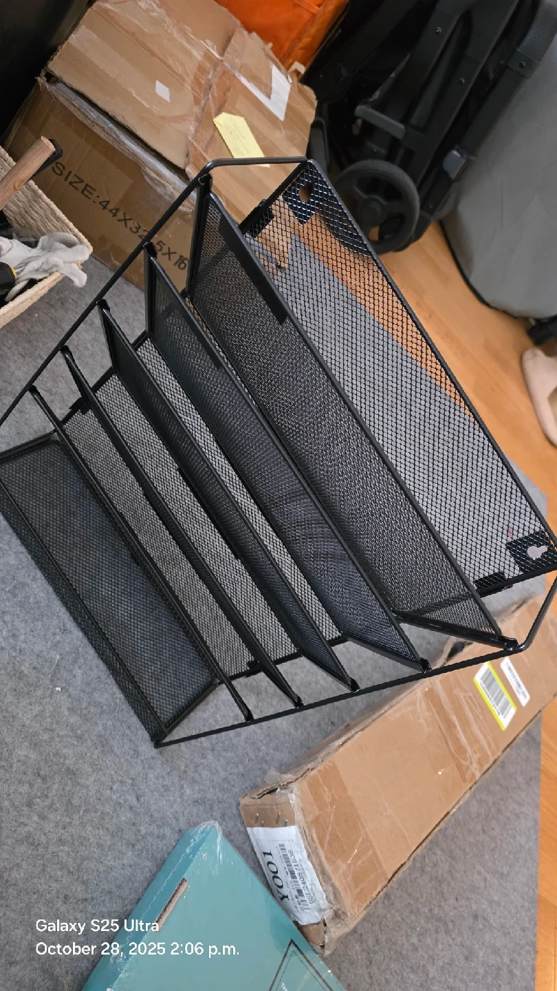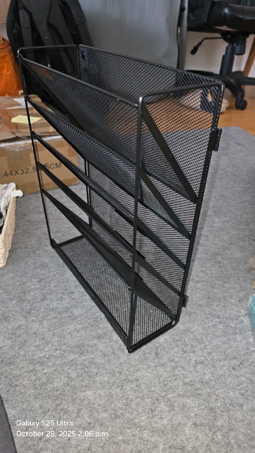 167Selling a metal wall-mounted file holder with 5 pockets! It's perfect for organizing files, notebooks, and magazines. The dimensions are approximately 42cm x 34cm x 12cm. Originally bought for $46.69!