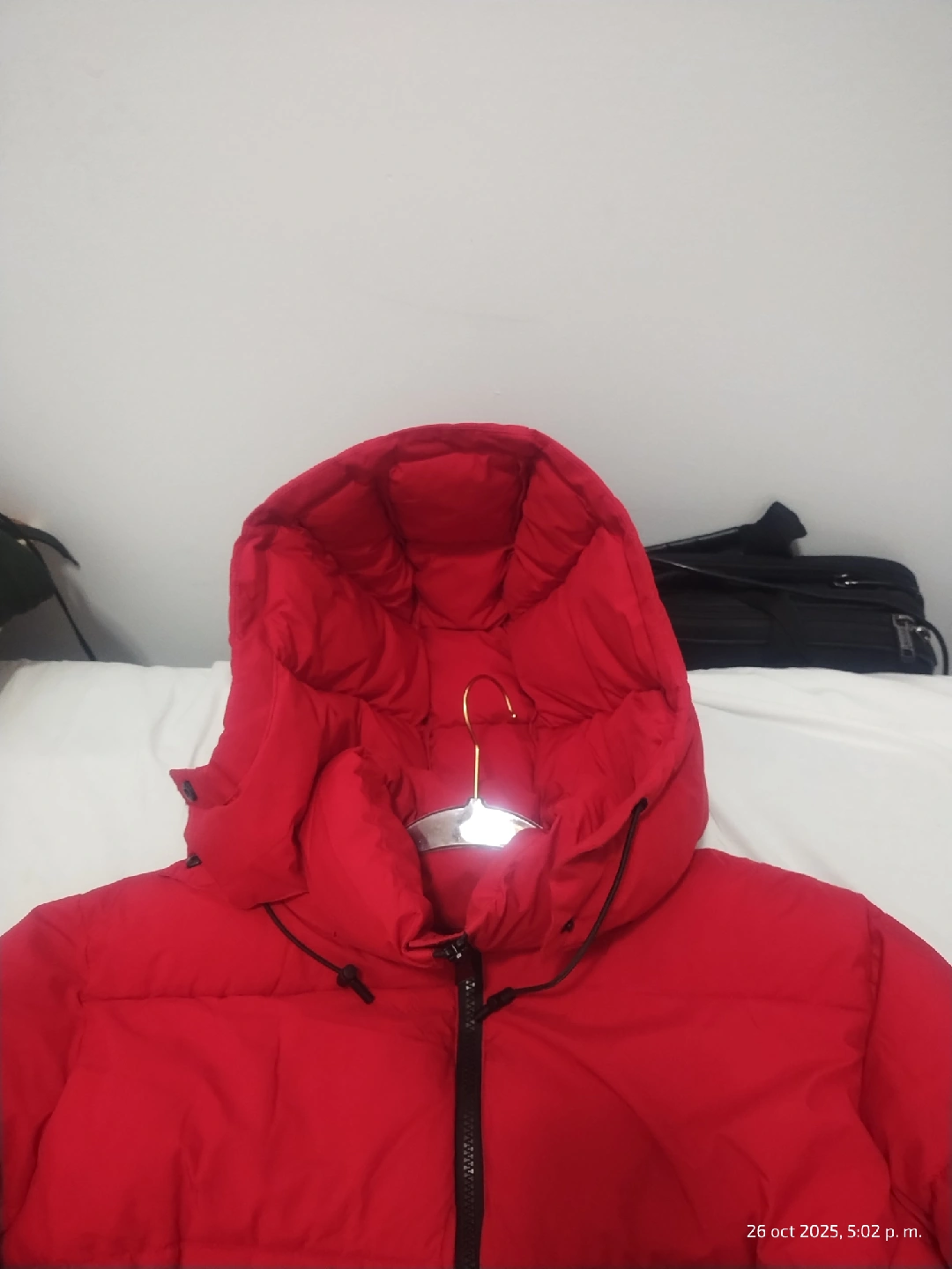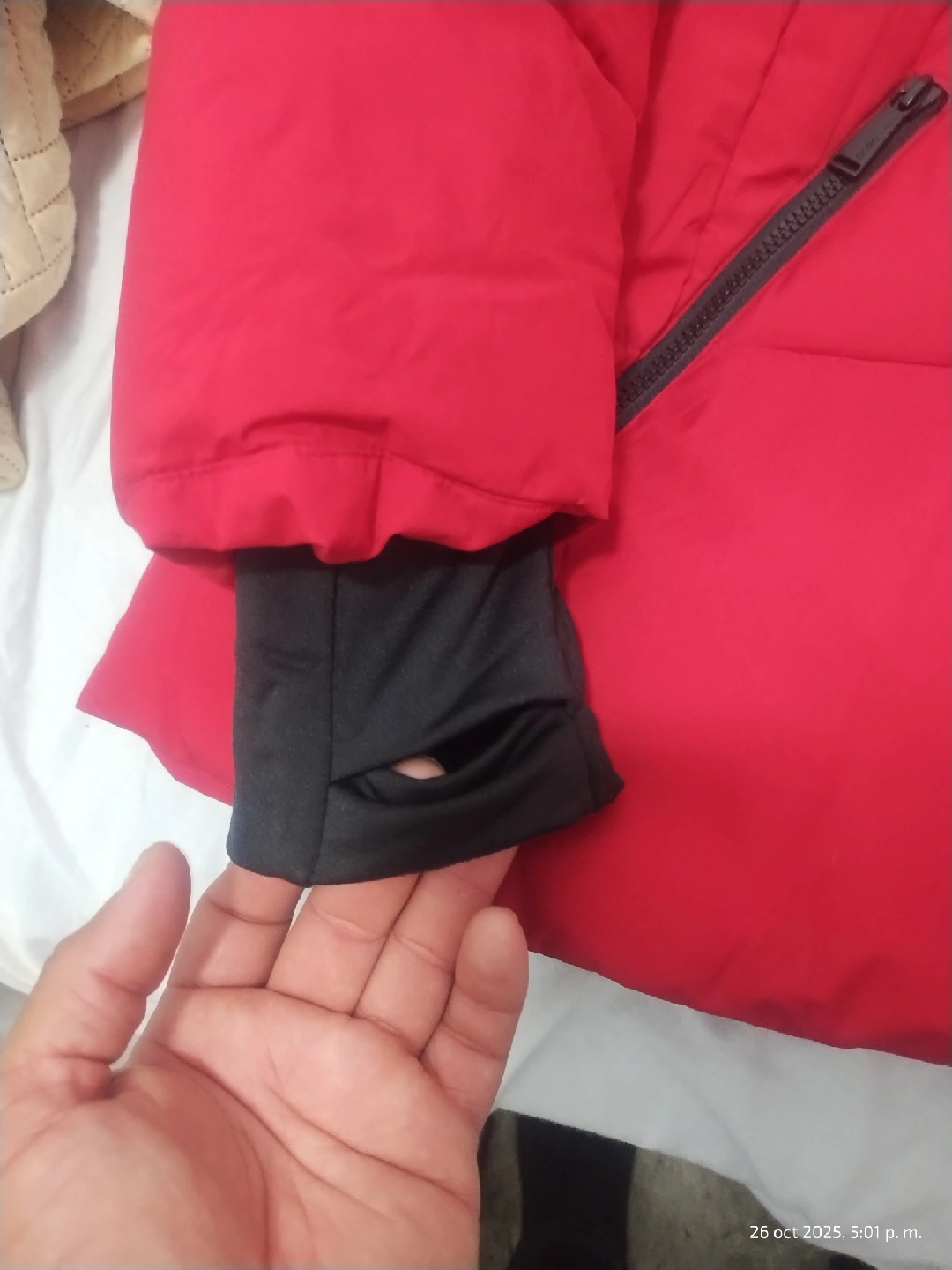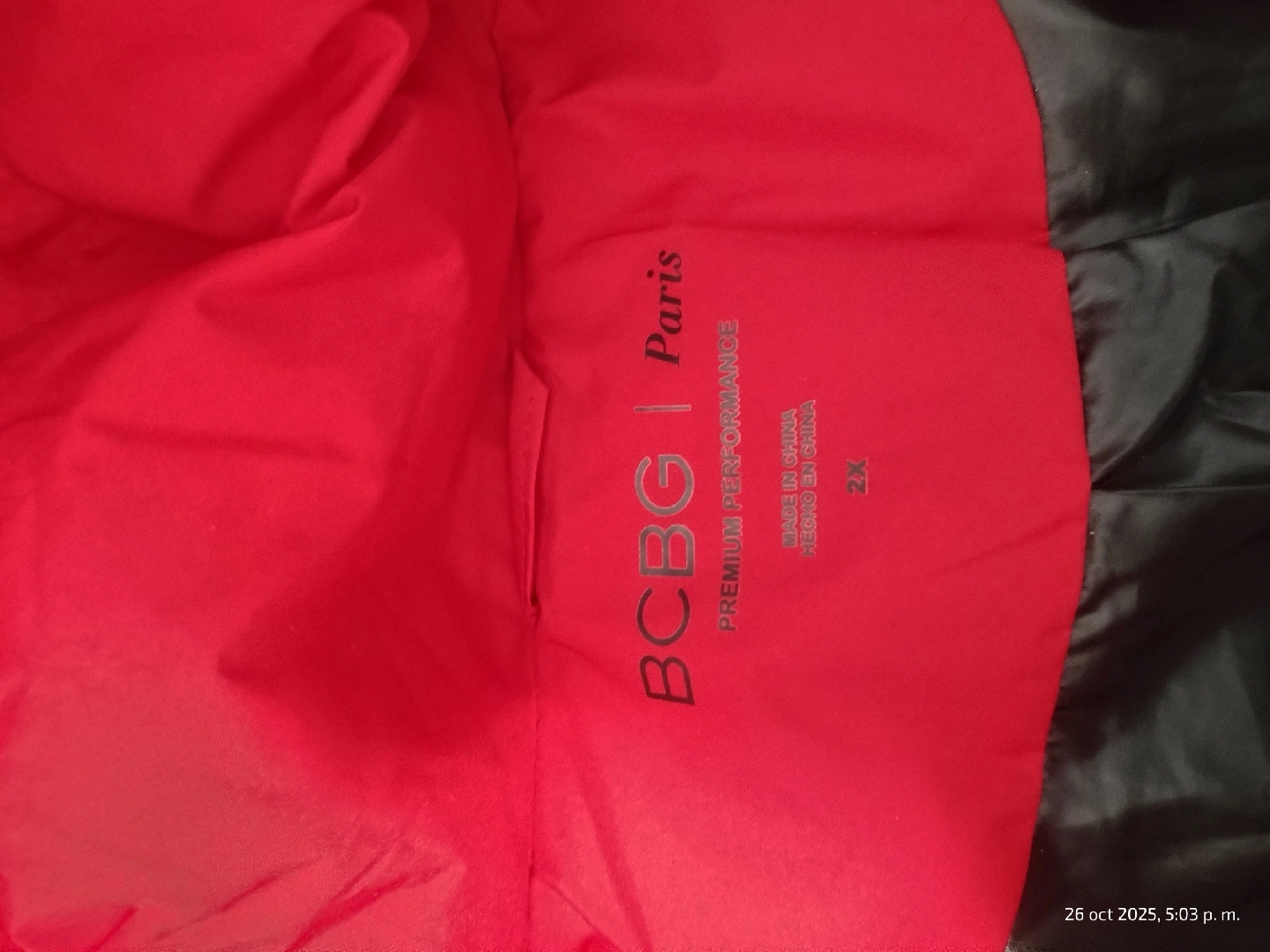 Selling a BCBG Paris puffer jacket in red! It's a size 2X and features black inner cuffs with thumb holes