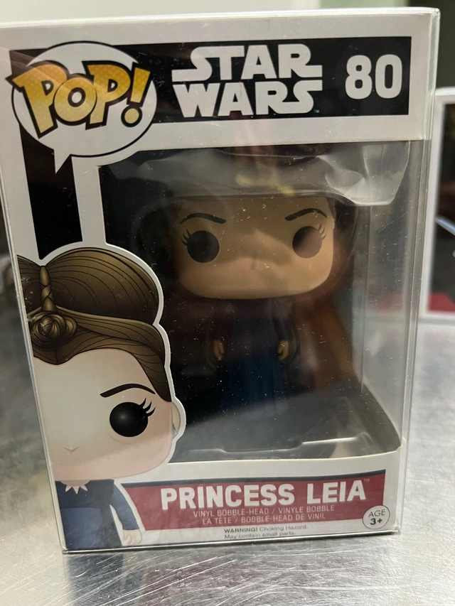 21Pop! Star Wars Series Figures: Rey (Staff) #58 ($20), Princess Leia #80 ($30), Luke Skywalker #106 ($30), Rey #104 ($20), Rey #119. Excellent clean and protection plastic box. Thank you. For sale by owner.
