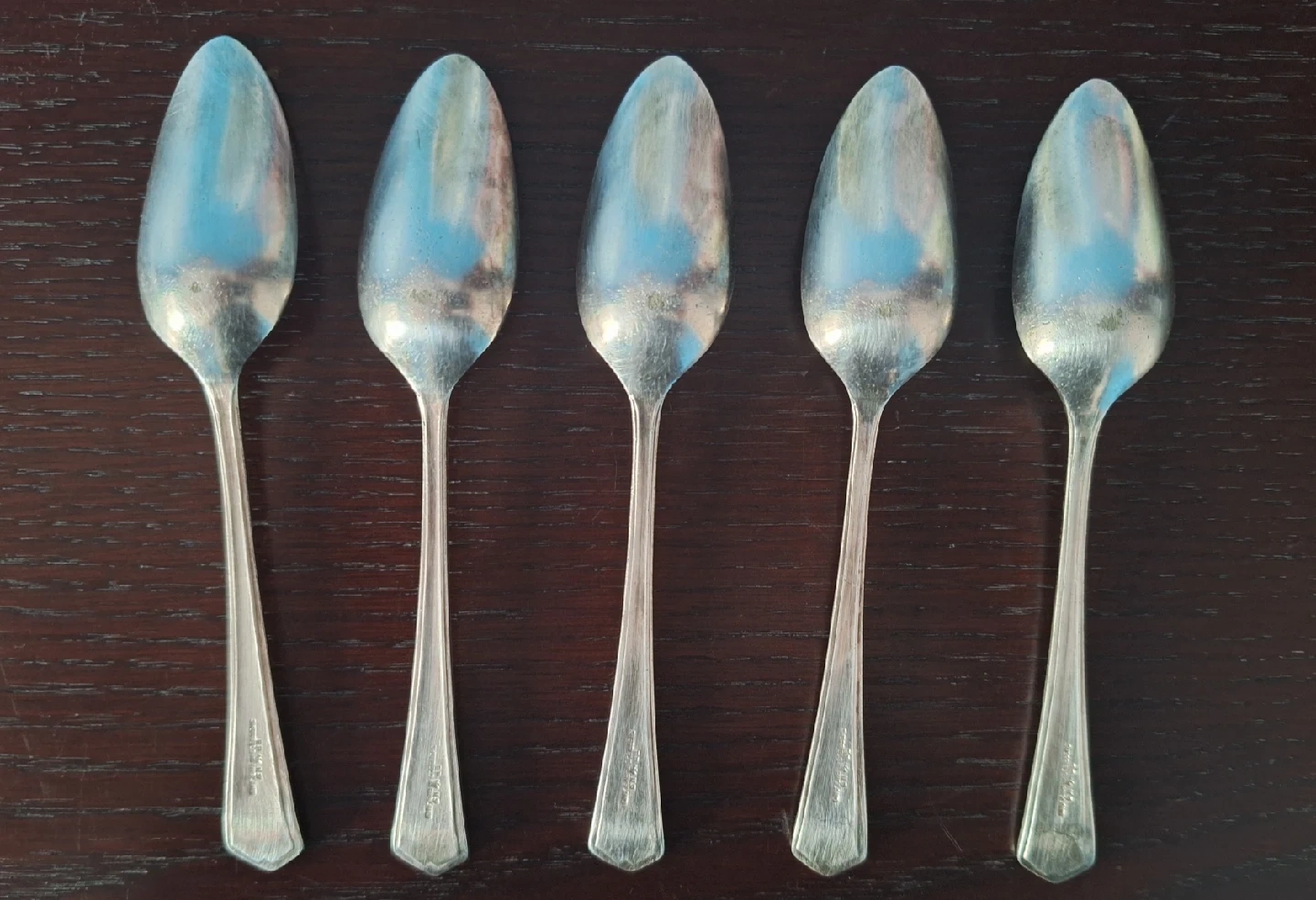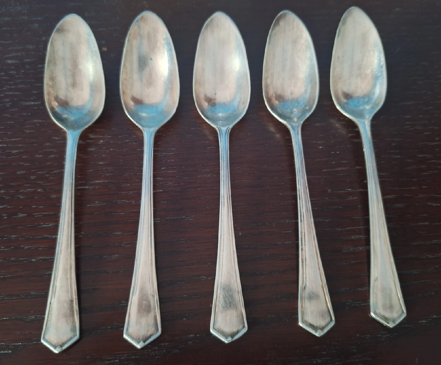 71Set of five vintage/antique silver plated spoons, Sheffield England.