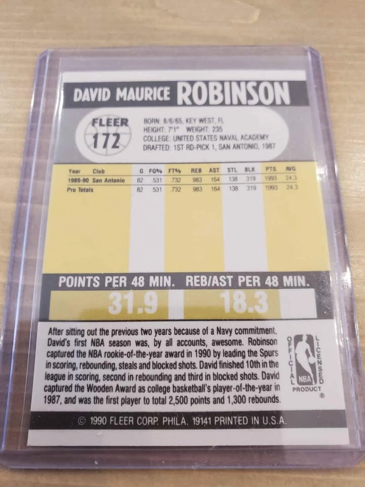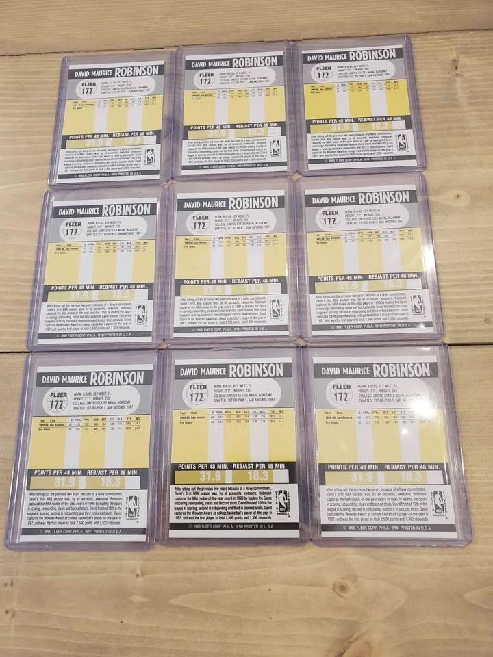 1990 David Robinson 1st Fleer Card "mint condition " $8 each Buy all 9 for $50 Pick up in Surrey/Clayton area 194th and 68th Ave Thanks for looking.
