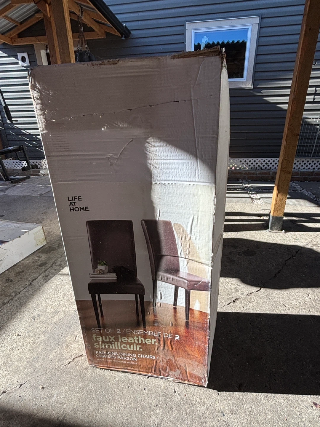 Selling a set of two Life At Home faux leather dining chairs. They come in their original packaging. These chairs would be a great addition to any dining room