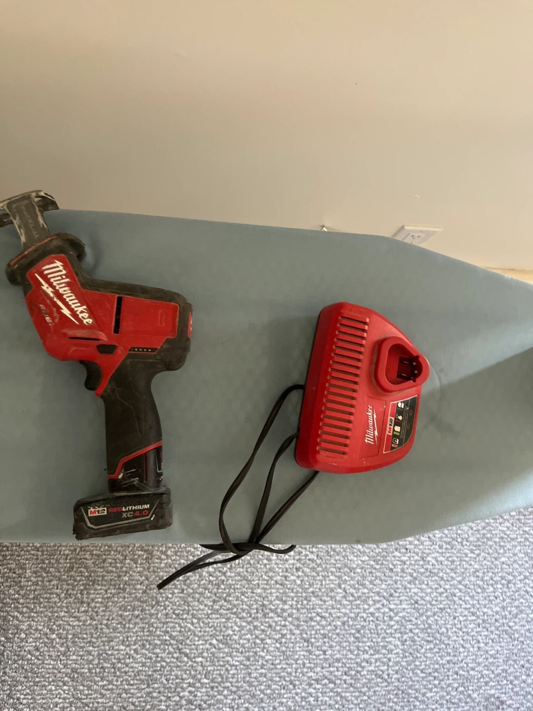 Selling a used Milwaukee M12 Cordless Hackzall Reciprocating Saw. It comes with the battery and charger. It shows signs of wear, but it's still in good working condition!