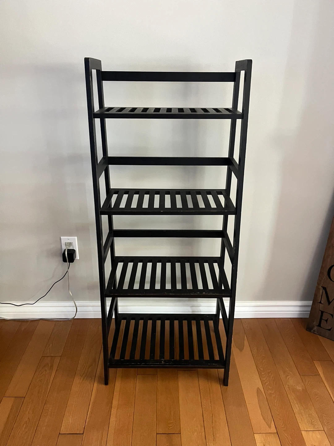 Pick up in Utopia. Espresso colour wooden ladder shelf with 4 tiers. It's perfect for displaying plants, books, or other decorative items. See last picture for measurements.