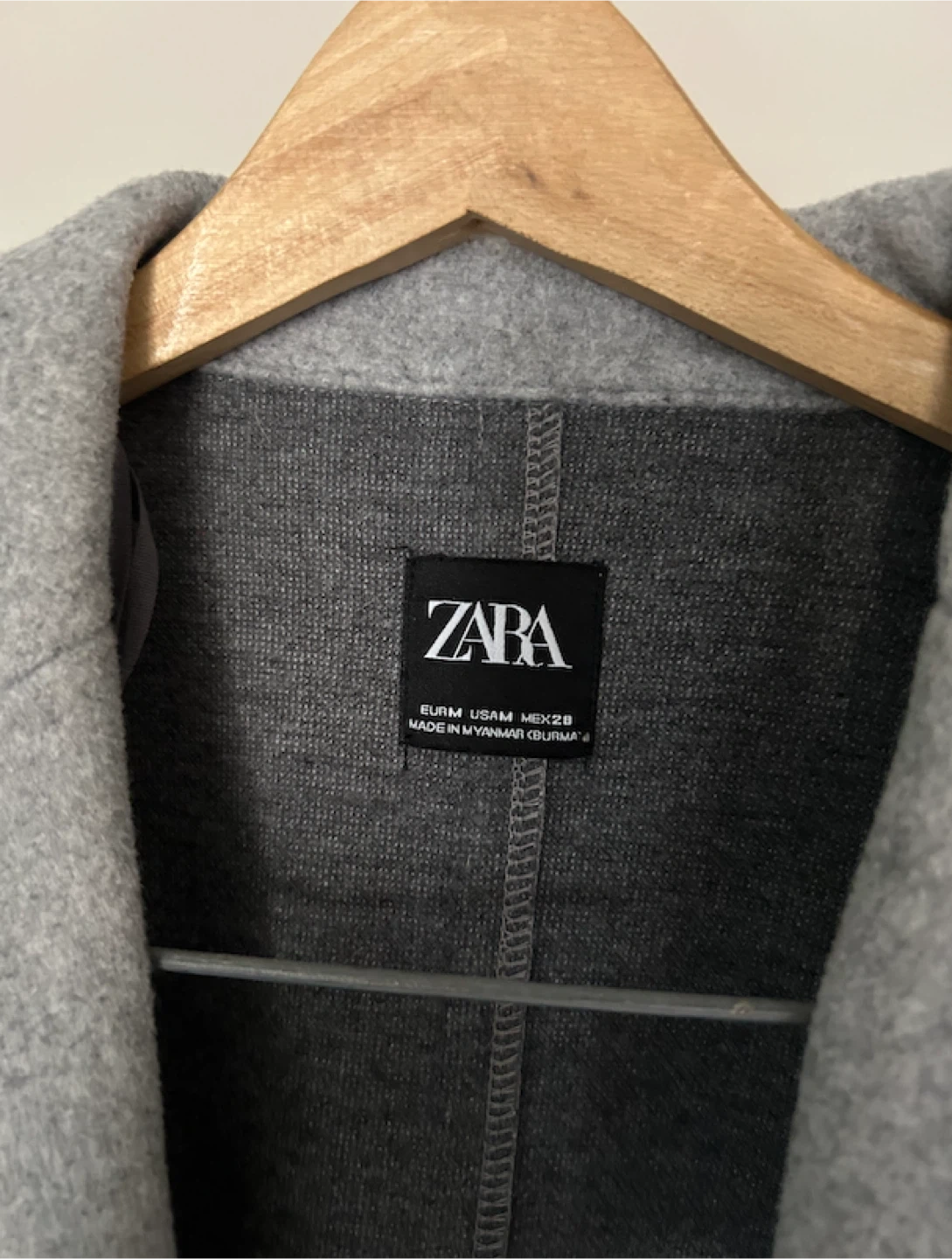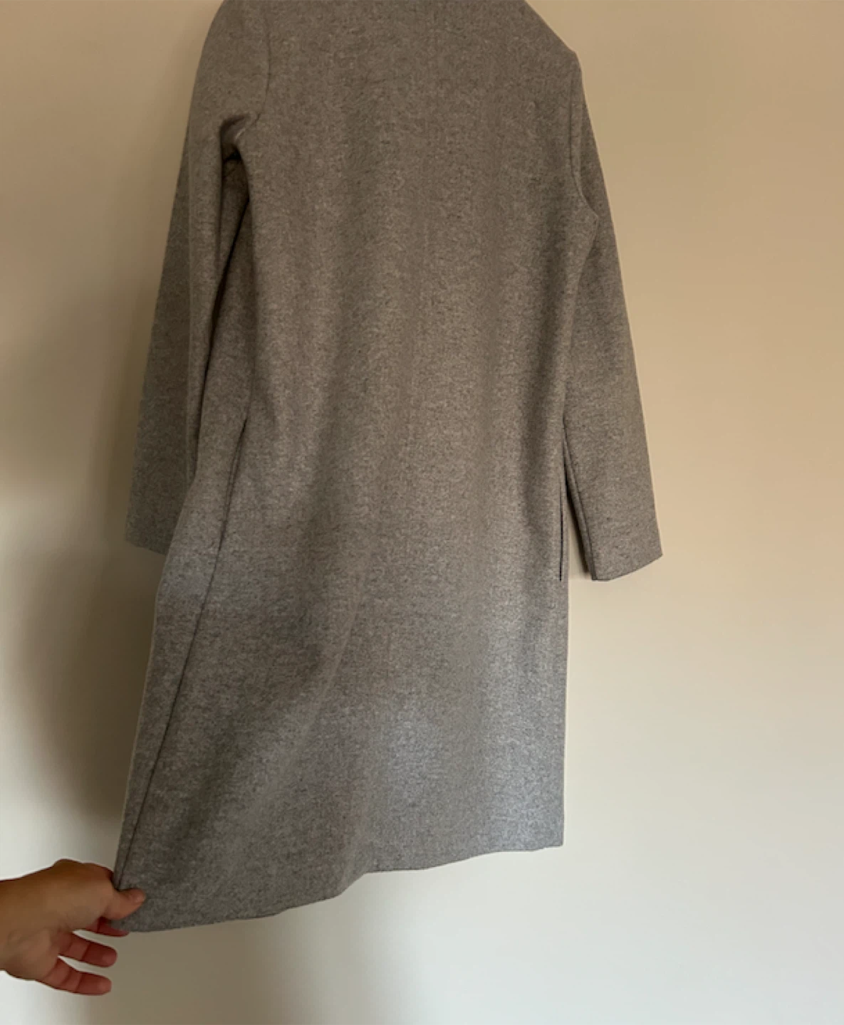 Zara lightweight, long length jacket with side pockets. Worn only a couple of times and in great used condition. Looks like wool but is a soft polyester fabric. Light grey colour.