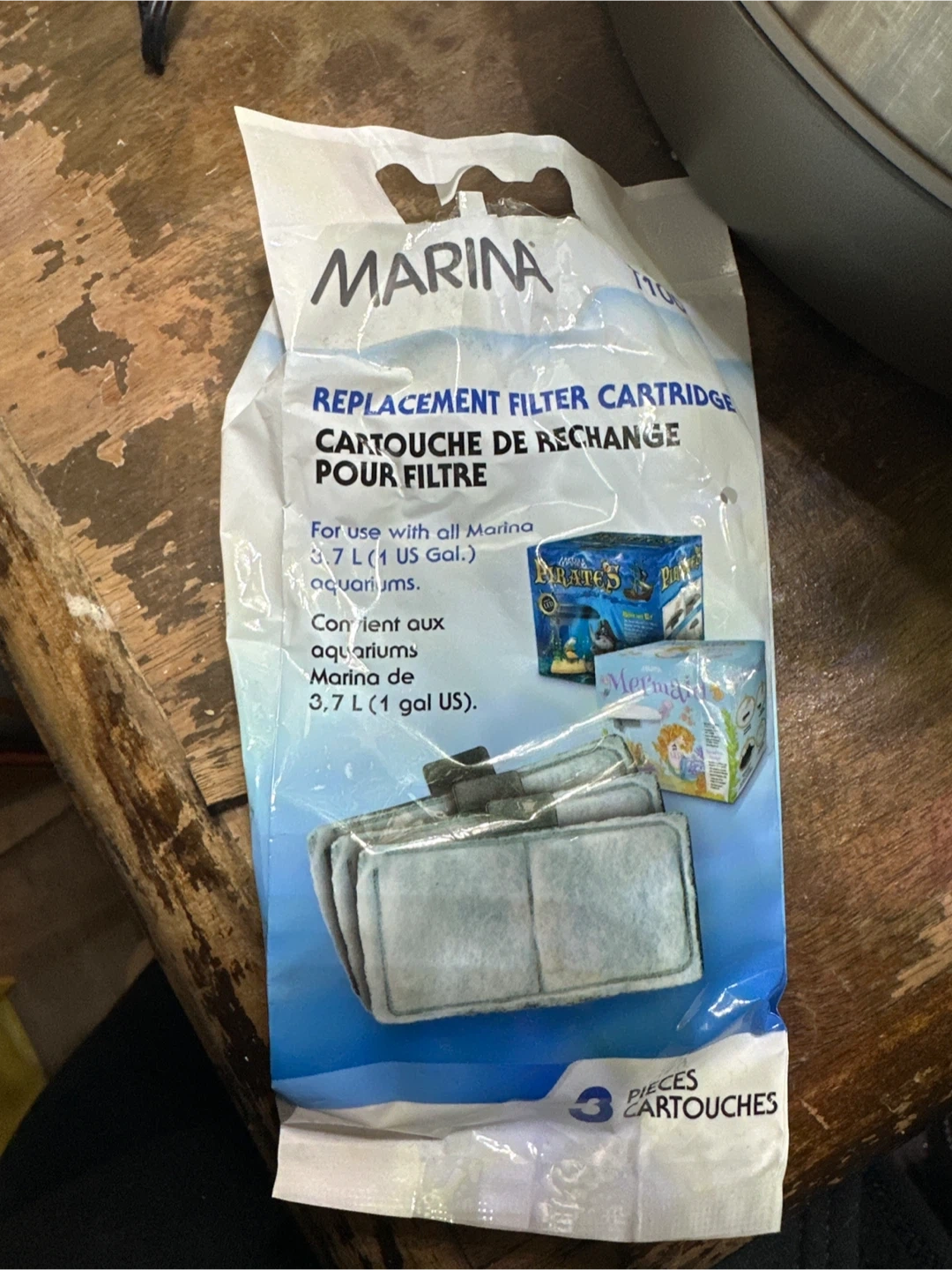 1 filter of Marina Replacement Filter Cartridges, T100 model. I only have one left in the pack, suitable for all Marina 3.7 L (1 US Gal) aquariums. I’ve upgraded to larger aquariums and no longer use it.