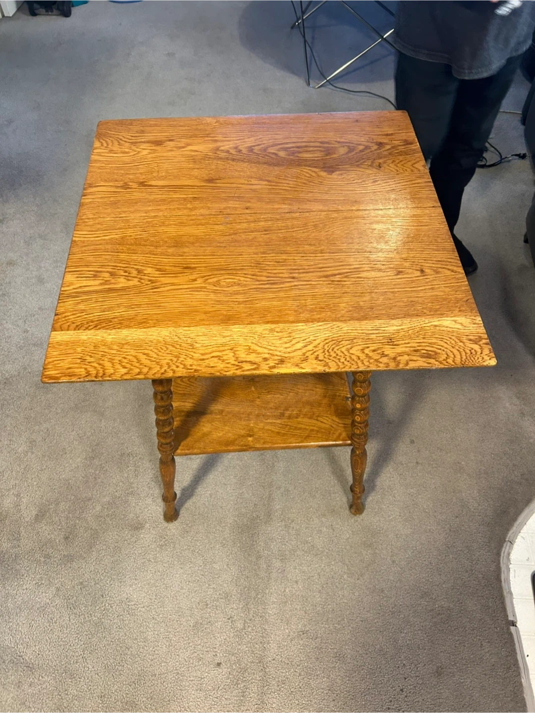 This antique oak parlor table from early 1900’s was refinished a few years ago. Has couple light scratches on top, nothing too visible.