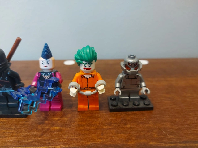 Lego Figures are like new but are dusty from storage. May have minor surface scratch and wear on plastic due to storage. No figures come with original packing. All figures are priced individually and in a bundle price, see below for details. Each figures comes with accessories and/or stand which they are pictured with. I'm not swapping accessories or stands. Please note the Ninja was cut off a fridge magnet and has marks from that on the back of his legs (See Photos)
