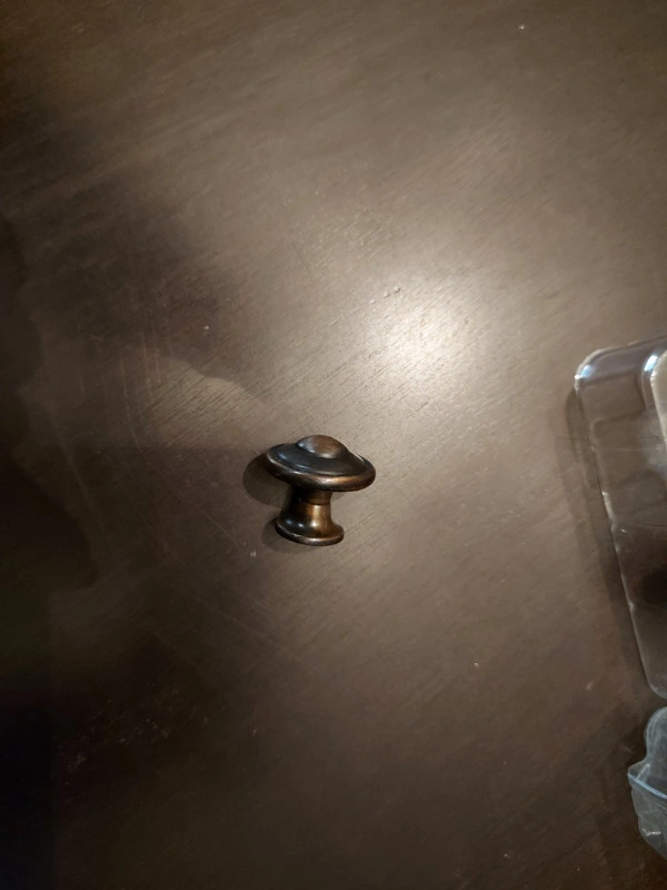 Removed from my Kitchen drawers, no my taste. Knobs are used from previous home owner and may have light surface scratches and wear Mounting hardware not included but is a #8 machine screw 12 knobs included with this sale Sold as bundle only See photos for measurements Pickup ONLY - Dallas Area FIRM