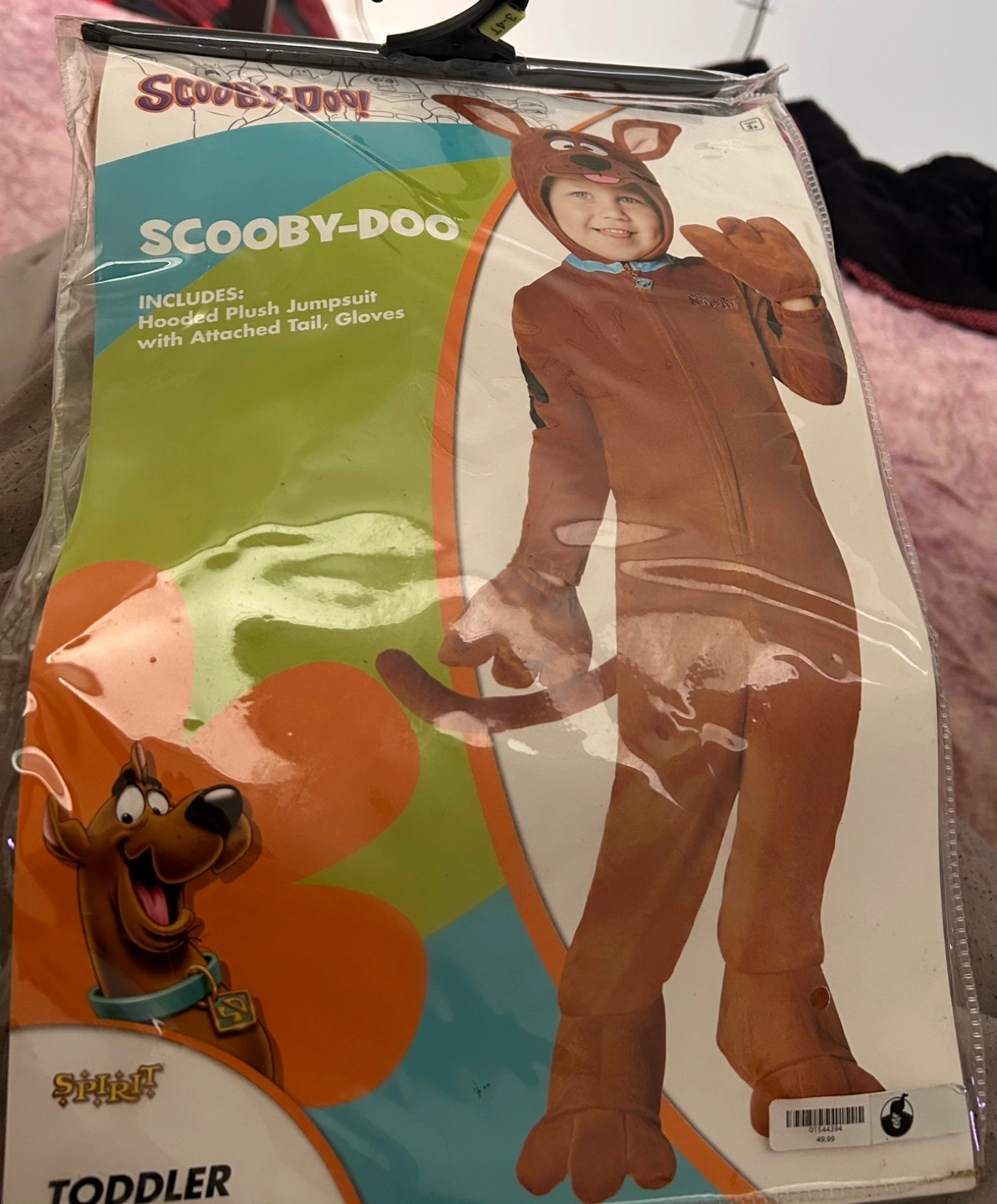 Get your little one ready for Halloween or dress-up with this adorable Scooby-Doo toddler costume! This includes a hooded plush jumpsuit with an attached tail and gloves. Perfect for any Scooby-Doo fan!