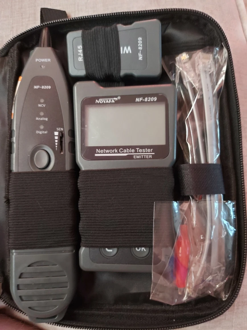 Selling a NOYAFA NF-8209 Network Cable Tester! It includes the emitter, receiver, and some RJ45 connectors. Great for anyone working with network cables and needs a reliable tester