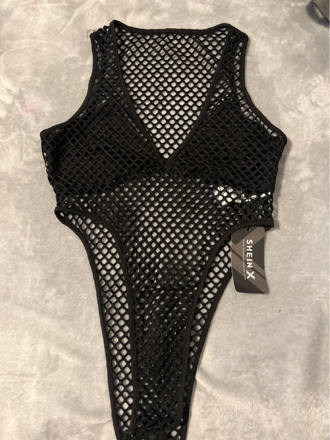 12Selling a SHEIN black fishnet bodysuit in size small. It's a stylish piece that's perfect for layering or wearing on its own. The material has good elongation, ensuring a comfortable fit. Check out the photos for a closer look!